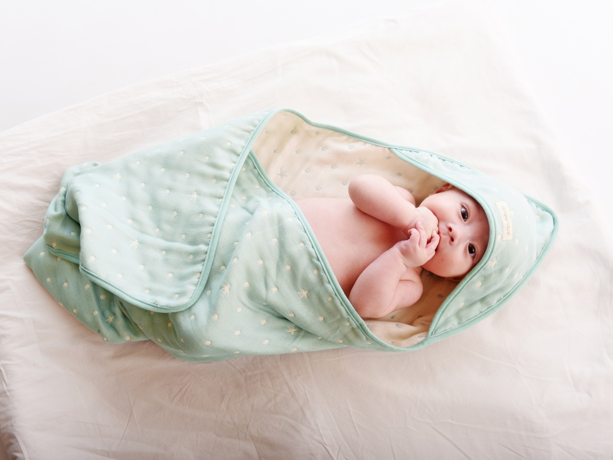 6重ガーゼフード付きバスタオルは、大判サイズ(約)80×80cmで赤ちゃんの体をすっぽりと包み込みます。お風呂上りの大人は、下の子のお着替え、上の子の体拭き、自分のこと、とやることが盛り沢山!そんな時は、まずこのバスタオルにお子様を包みましょう。湯冷め防止にもなり、少しだけ心に余裕が生まれるはず。
