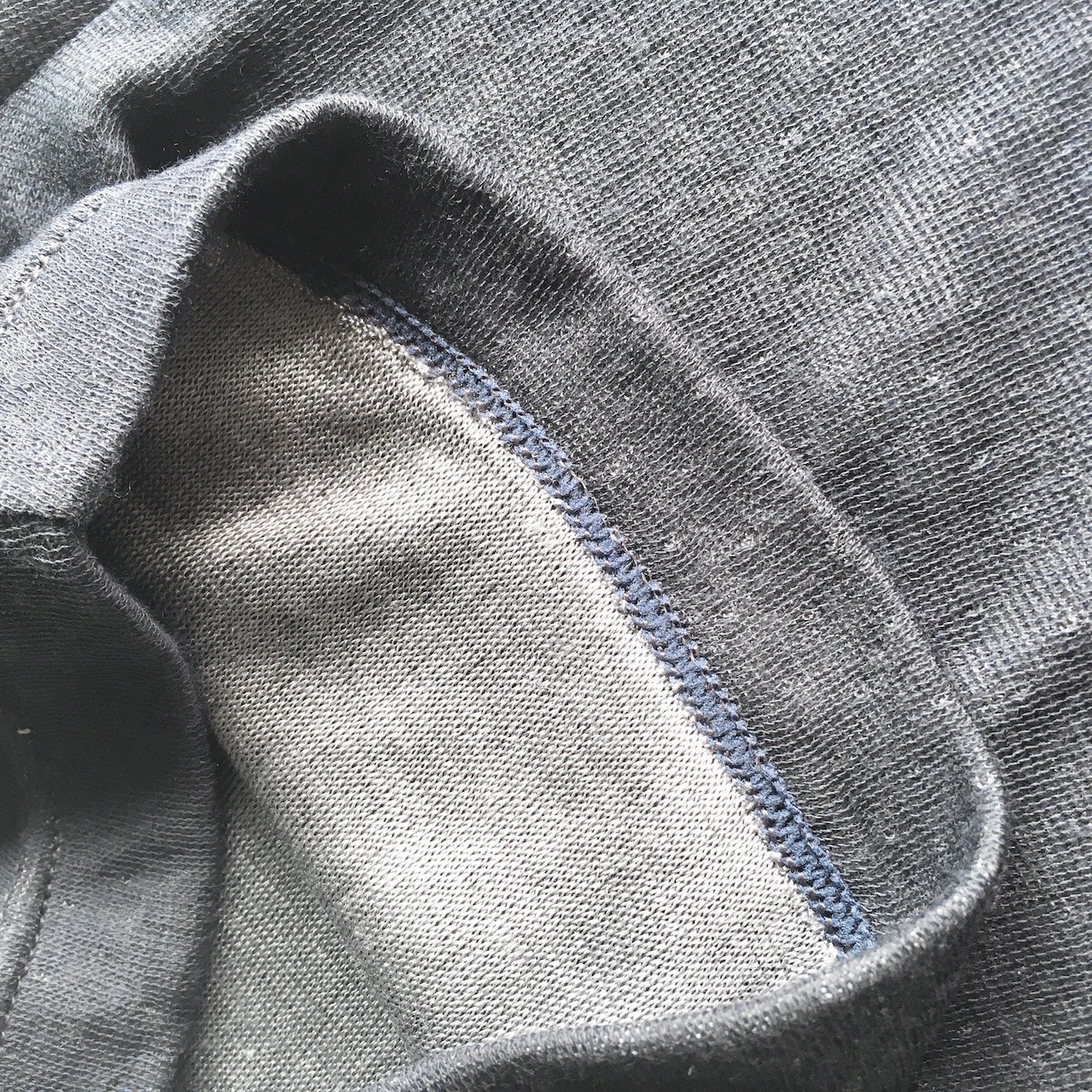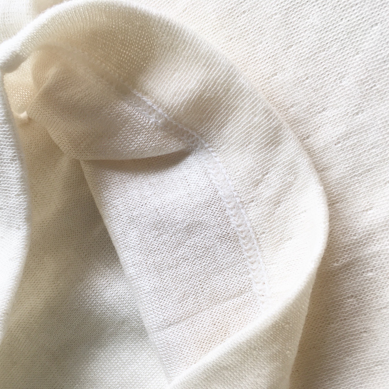 ※ウェストの腹巻き部分はシルクが全面に使われて、且つ、ずり落ちない仕様にするため、贅沢に二重折りのリブ仕立てに仕上げました。温かさが増してしっかりとお腹を包みます。
