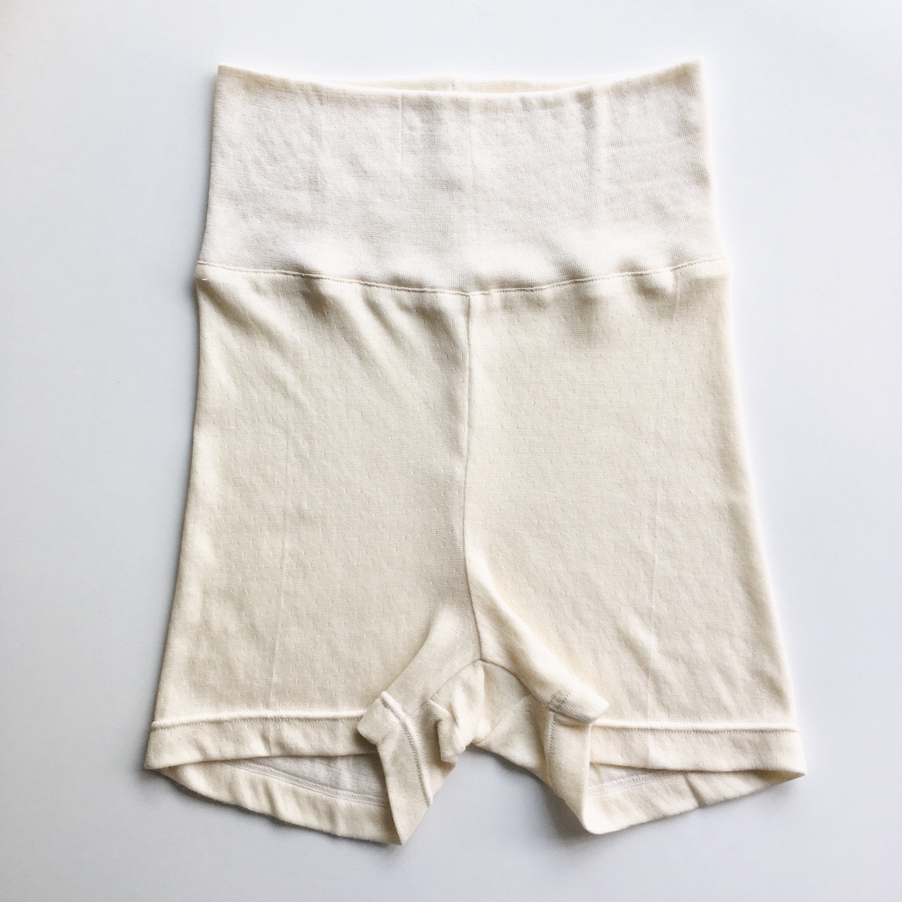 京都の老舗絹糸問屋のオリジナルシルクニットを使い、肌に心地よく、軽やかな腹巻き付きのウォームショーツを作りました。 肌に直接触れる面をシルクで、洋服と触れるオモテの面はコットンになった二重がさね織り。肌にチクチクする余分な縫い目やネームタグ、品質表示も極限まで取り除きシンプルに。且つ、立体裁断によるパターンメイキングでお尻を包み込むような履き心地の良さにもこだわりました。 肌触りはまるで赤ちゃんのほっぺのように滑らか。