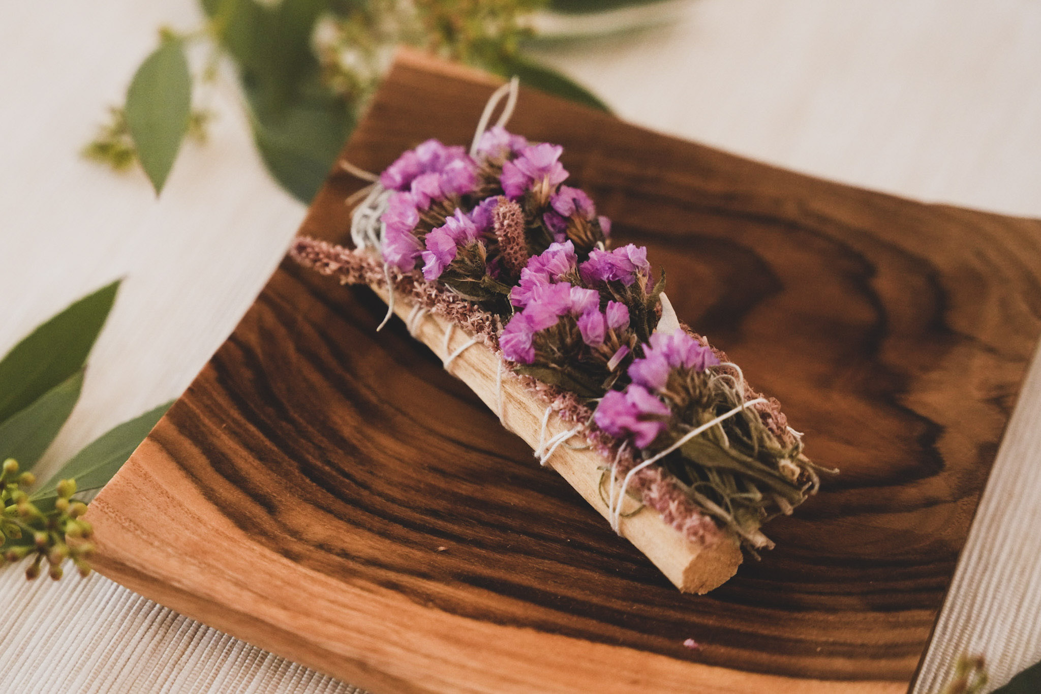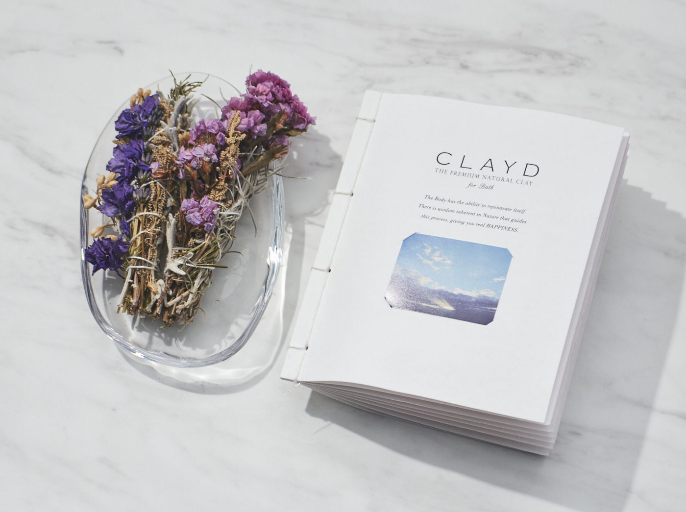 神聖なハーブや廃棄花をアップサイクルしたドライフラワーを束ねた「Smudge stick(スマッジスティック)」と、クレイ100%入浴剤「CLAYD(クレイド)」の入浴剤をセットにしました。