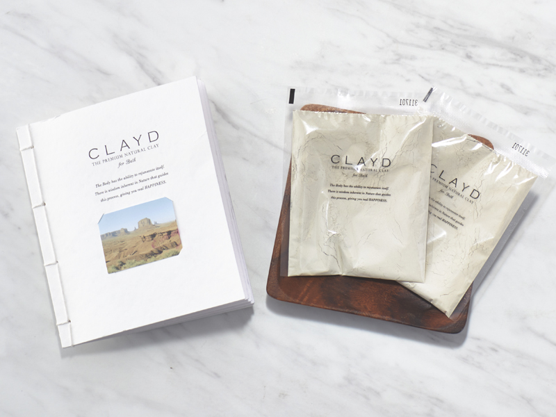 今、世界中のセレブが注目していると言われている「CLAYD(クレイド)」のクレイ100%入浴剤。日本でも多くの著名人が支持する話題の逸品です。ブック型がおしゃれな「WEEK BOOK」は、クレイの採掘地であるアメリカ西海岸の砂漠の美しい風景写真とともに1週間分(計7点)をセットでお届けします。 使い方は本品1袋を浴槽の湯に溶かして20分〜1時間浸かるだけ! くすみ*1・毛穴*2・冷え*3・肌荒れ*4・血行促進*5 に優れた効果を発揮します。妊婦さん*6や、赤ちゃんの沐浴にもお使いいただけます。スポーツ後の体のケアとしてもおすすめです。 素材の性質的にソルト(精製塩ではなく、海塩や岩塩など)と相性がいいので、クレイバスに、ひとつまみのお塩を入れるのもおすすめです。相乗効果でデトックスの力が高まります。 *1 汚れや角質による *2 汚れの除去 *3、5 温浴効果による *4 乾燥・ハリ・ツヤ不足 の状態 *6 妊娠初期の妊婦さんは、CLAYDとは関係なく、熱いお風呂に長時間入ることは避けたほうがよいといわれています。ぬるめのお湯でゆっくりリラックスすることをおすすめします。