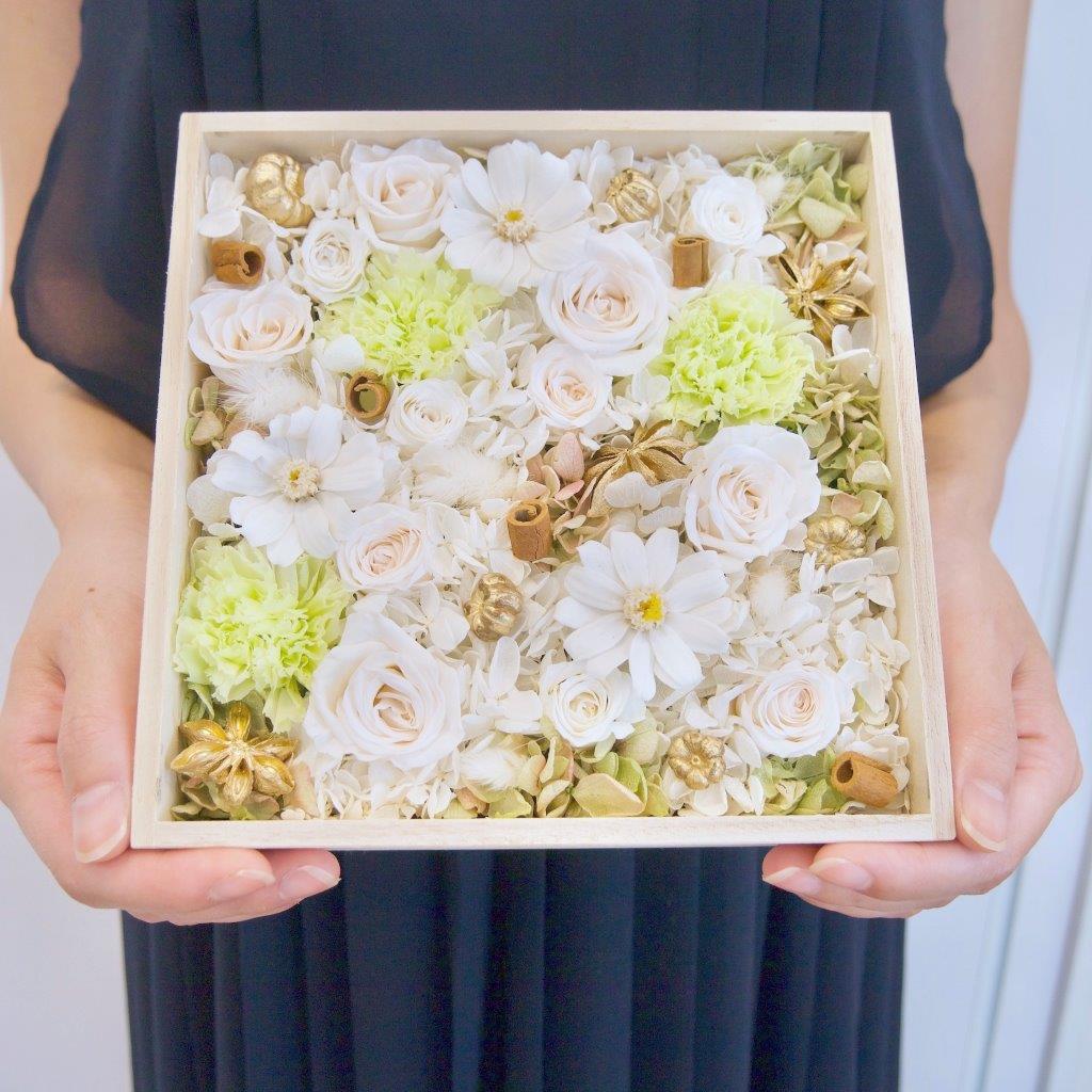 | 原材料 | プリザーブドフラワー・桐(箱)・シナベニア(蓋) |