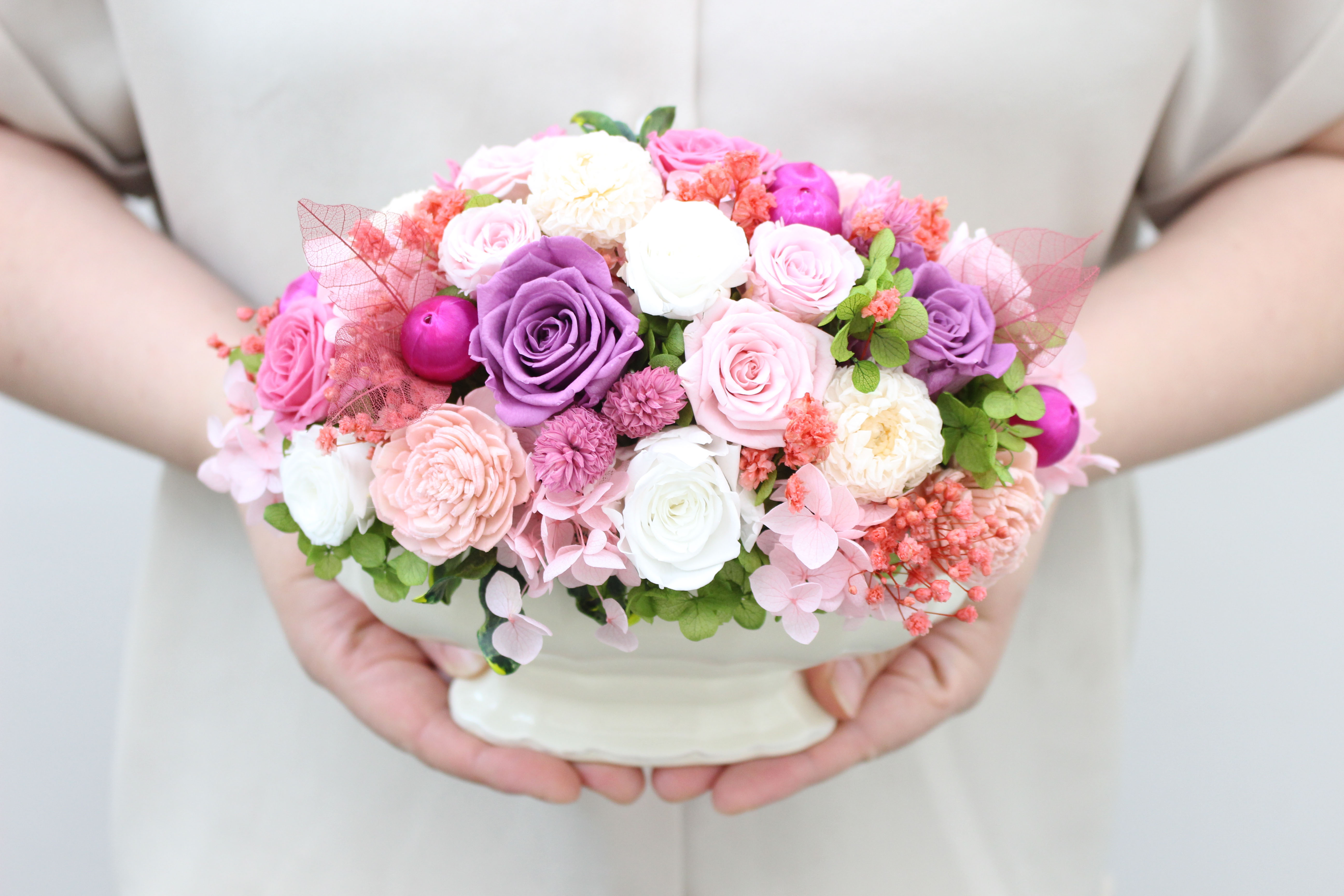大口注文・法人のお問い合わせはこちらロココ調を彷彿させるような可憐で優雅な雰囲気が魅力。お祝い用途にぴったりな商品です。誕生日、結婚祝い、開店祝いなどに喜ばれています。 クリアケース入りでリボンをかけてお届けします。クリアケースのままかざると埃や乾燥から守ることができます。もちろん、ケースから出して飾っても素敵です! ワンランク上の贈りものをお探しの20代、30代、40代女性におすすめです。