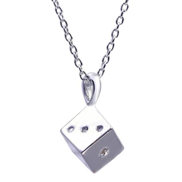運命を切り開くダイス(サイコロ)は少し小ぶりですが、しっかりとしたシルバーの重厚感と高級感が特徴的なネックレスです。