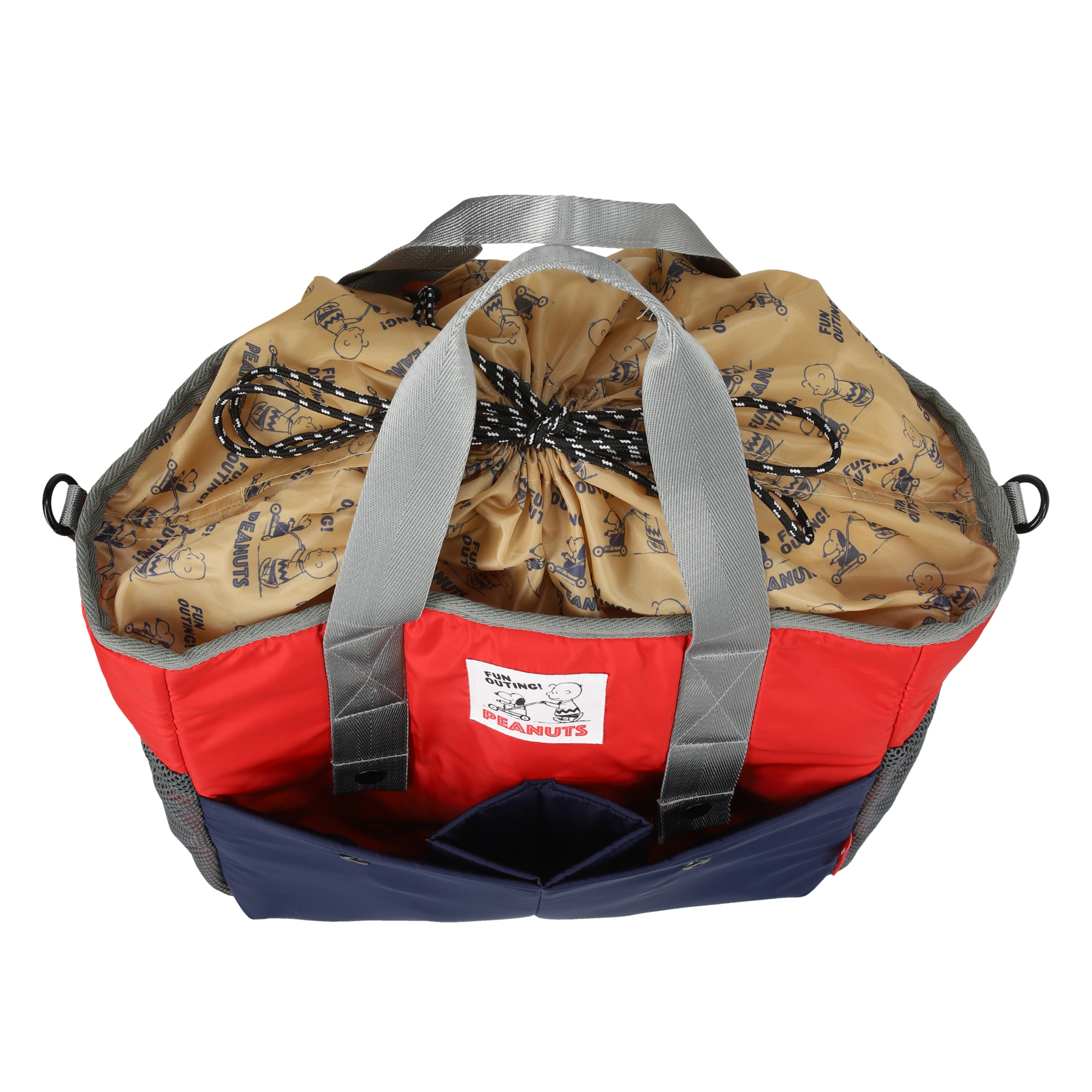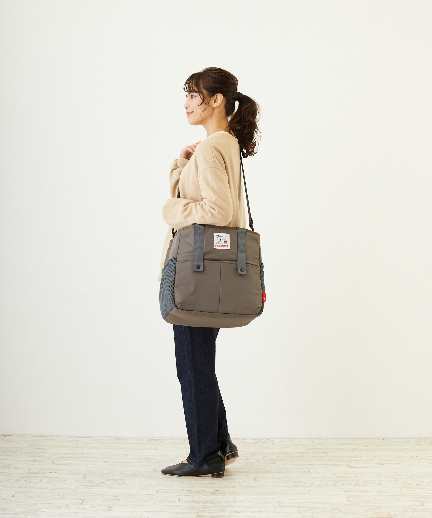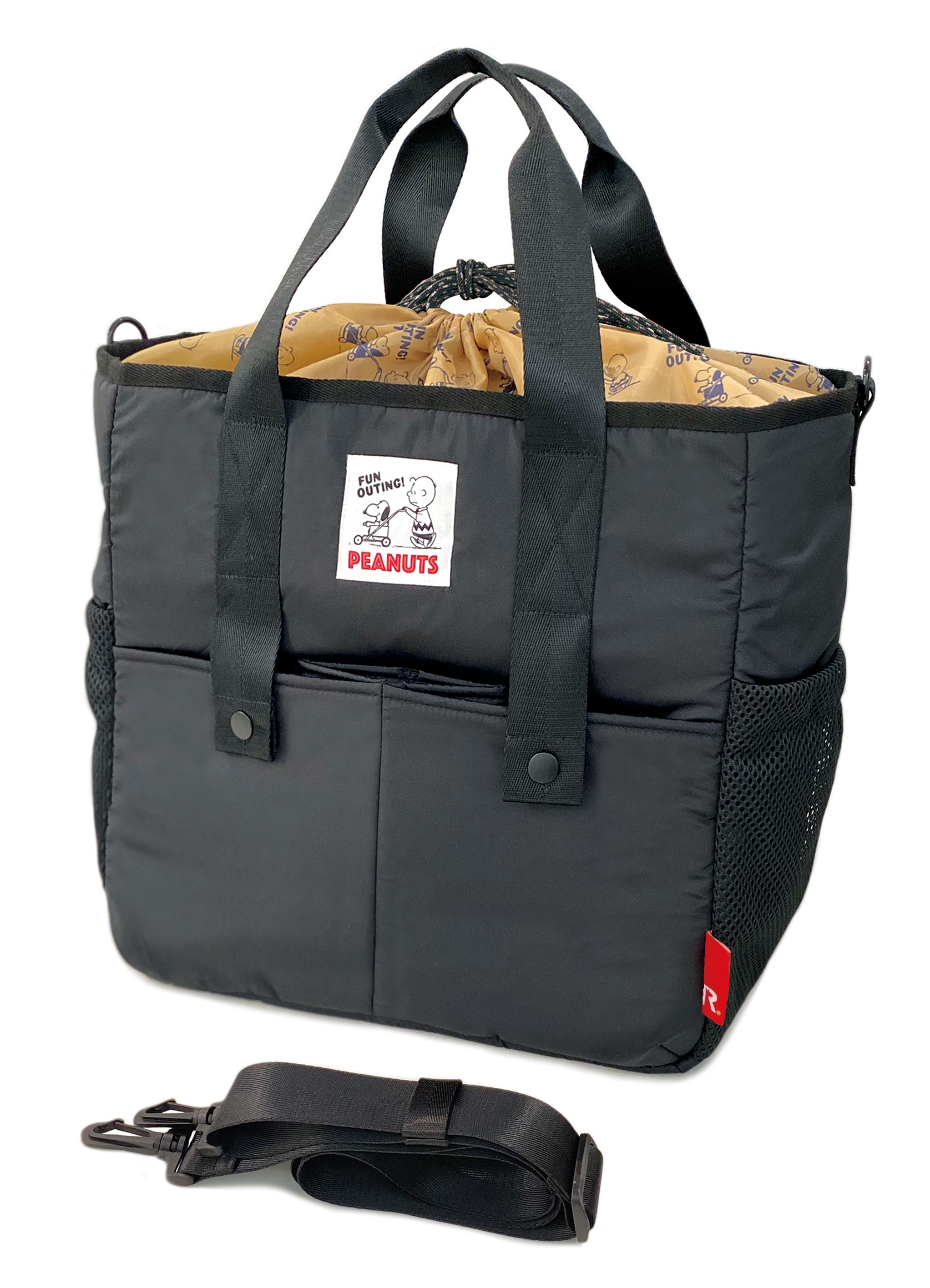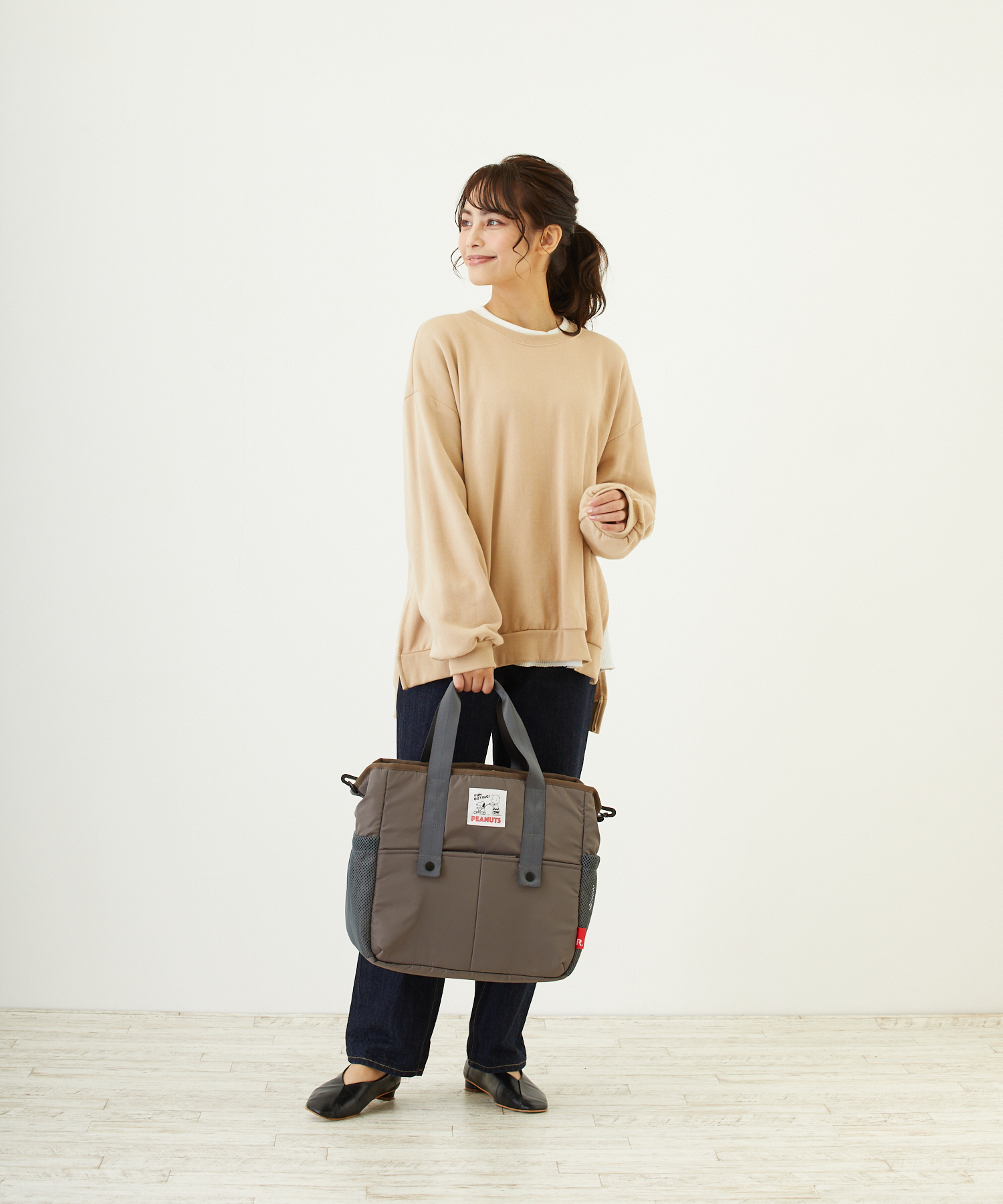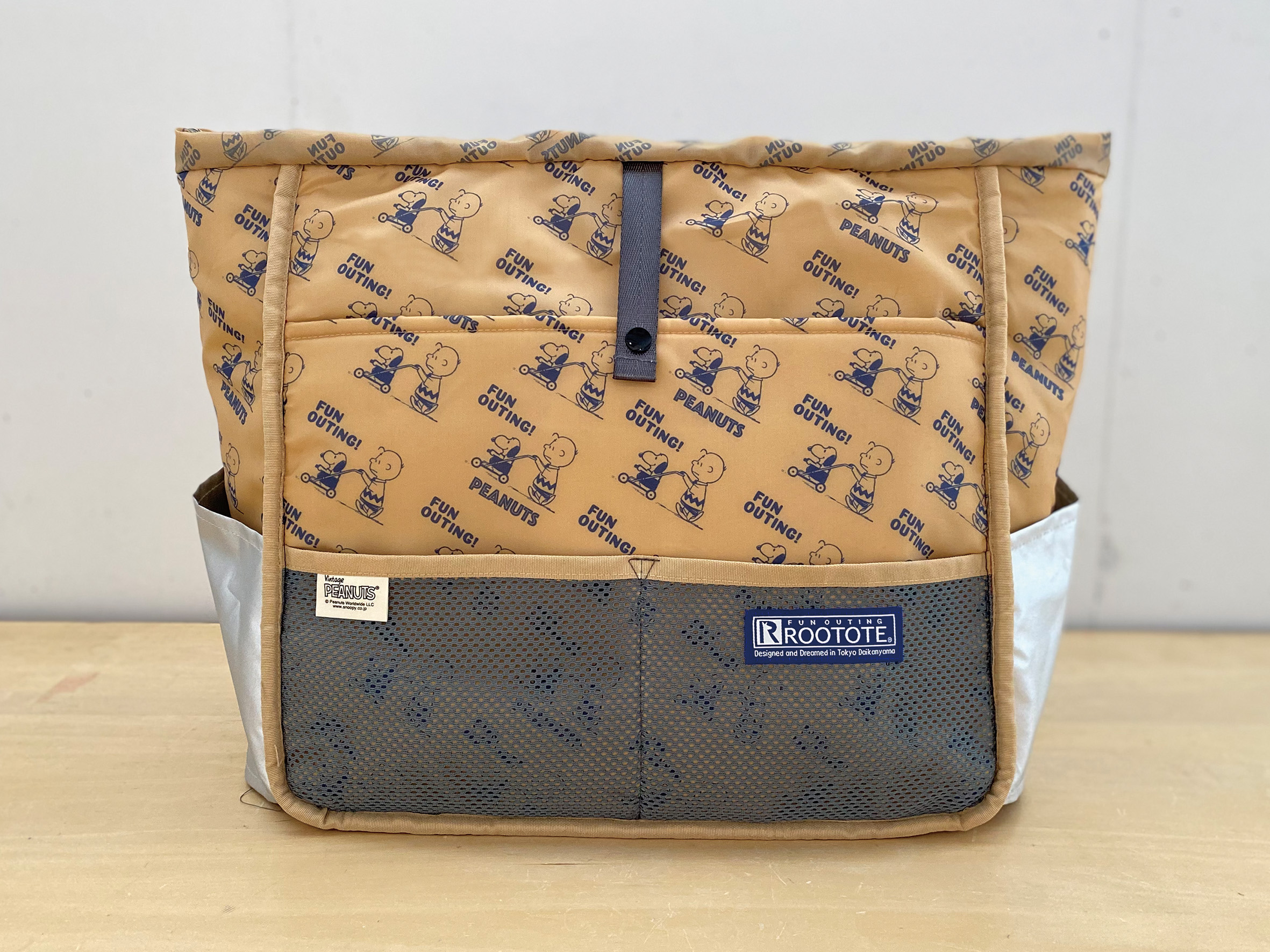 2001年に誕生したトートバッグ専門ブランド「ROOTOTE(ルートート)」のマミールー Peanutsです。赤ちゃんとの外出に必要なものが全て入る、ショルダー付きのマザーズバッグです。消臭抗菌加工されたルーポケットや、哺乳瓶を入れるボトルホルダーなど全12箇所もの収納ポケットがあります。