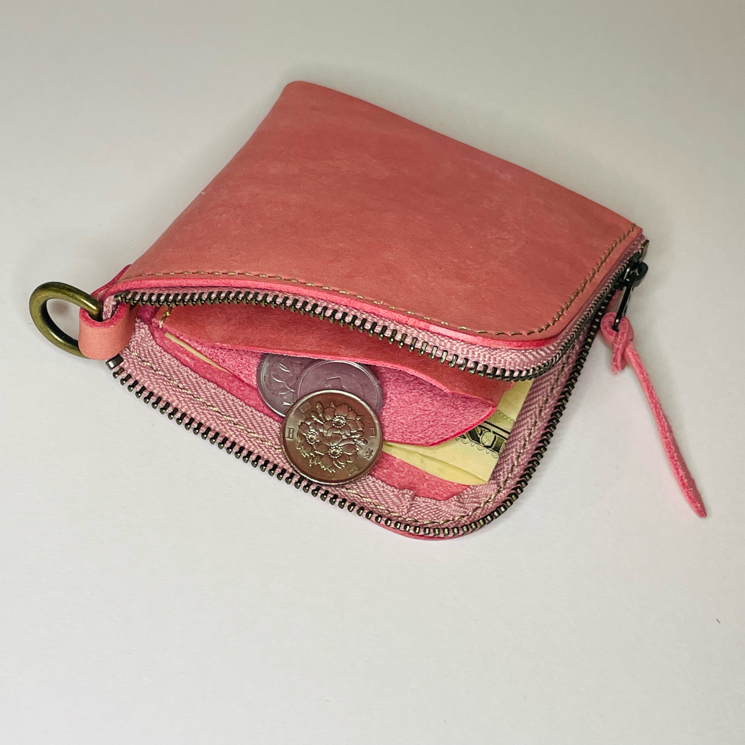 大口注文・法人のお問い合わせはこちらL字型ジップで手のひらに収まる大きさで、ちょっとしたお出かけに重宝するミニウォレットです。非常に使いやすく、センターに小銭などを入れるポケットが1つ、その両サイドにはカードポケットがあるシンプルな作りです。