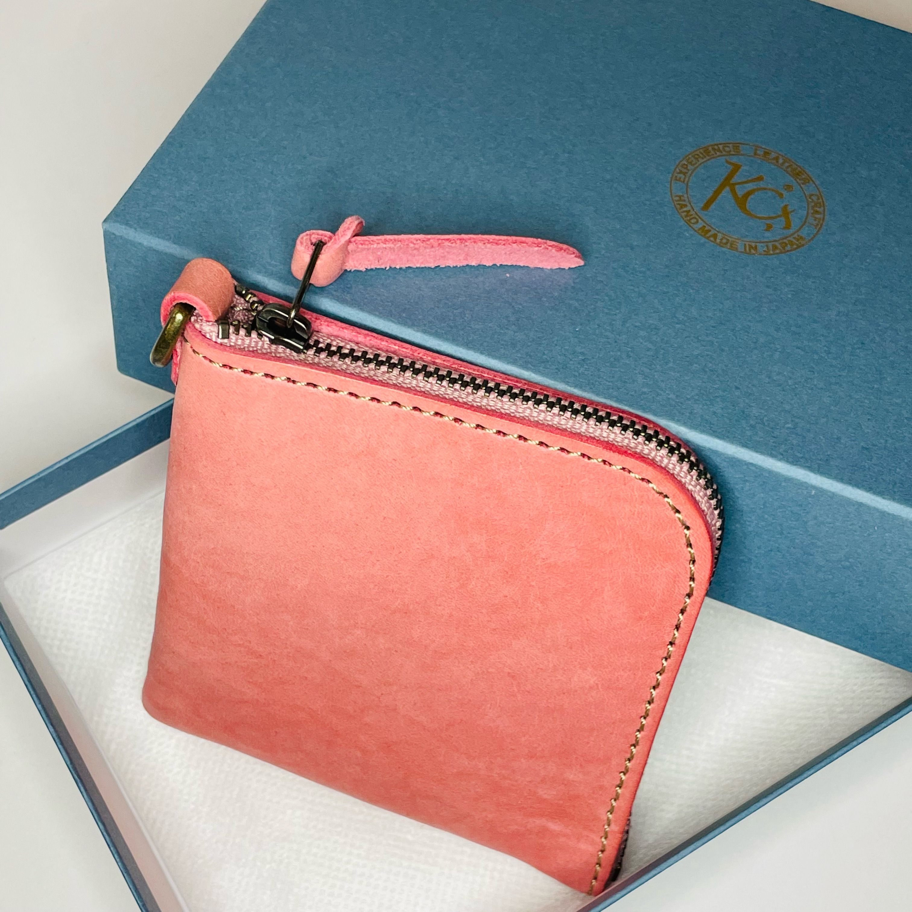 レザーブランド「KC,s(ケイシイズ)」のミニウォレット。L字型ジップで手のひらに収まる大きさで、ちょっとしたお出かけに重宝します。革表面を摩擦し起毛させたハーフヌバックは、通常のヌバックとは異なり少し荒めの仕上げです。色ムラがあり、独特な風合いを楽しむことができます。