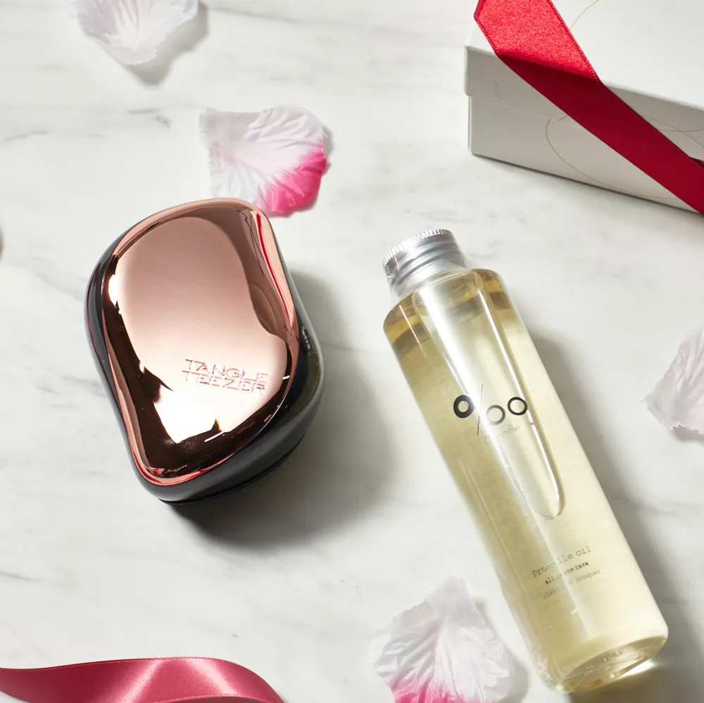 タンプだけの限定セット商品!とかすだけで髪の毛がサラサラになる魔法のブラシ「TANGLE TEEZER」のコンパクトスタイラーと、ボディにもお使いいただけるオールインワンオイルをセットにしました。コンパクトスタイラーには名入れ可能!特別なギフトにきっと喜んでいただけるはず。