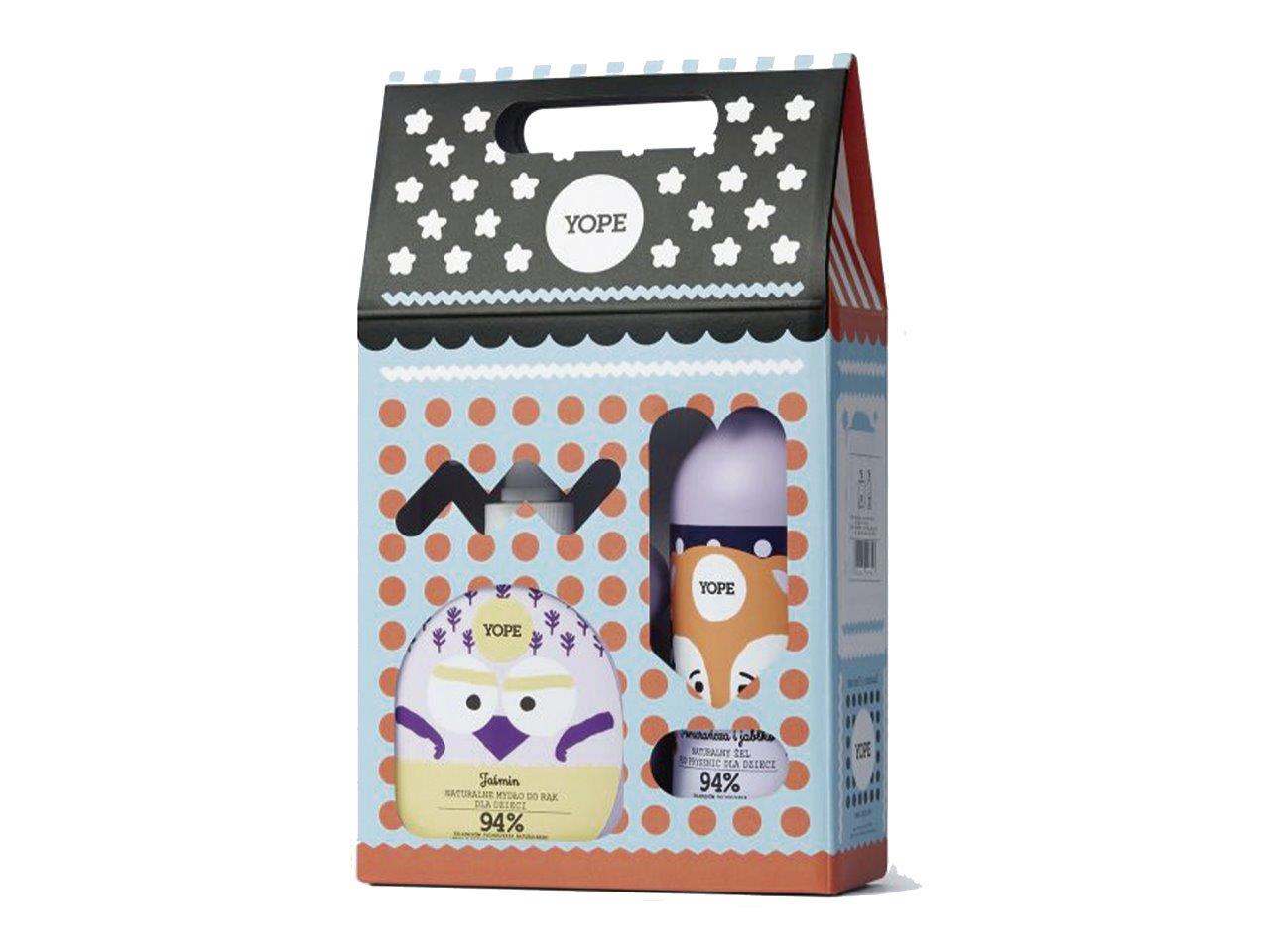 ポーランド発のナチュラルコスメ&ハウスケアのブランド「YOPE(ヨープ)」のハンドソープ(ジャスミン)とシャワージェル(オレンジ&アップル)のギフトセットです。お子様が喜ぶ可愛い顔をデザインし、香りにもこだわっています。敏感肌の方にもおすすめです。