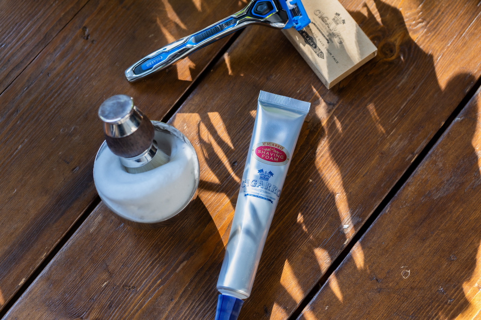 男性のためのパーソナルケアブランドCIGARRO(シガーロ)の「シェービングフォーム」はカミソリのすべりと肌へのやさしさ、2つの要素の両立を追求したアイテム。泡の気密性と肌への密着感が大きな特徴。シアバター配合でシェービング中の肌を守り、健やかな肌へと導きます。贈り物にもおすすめ。