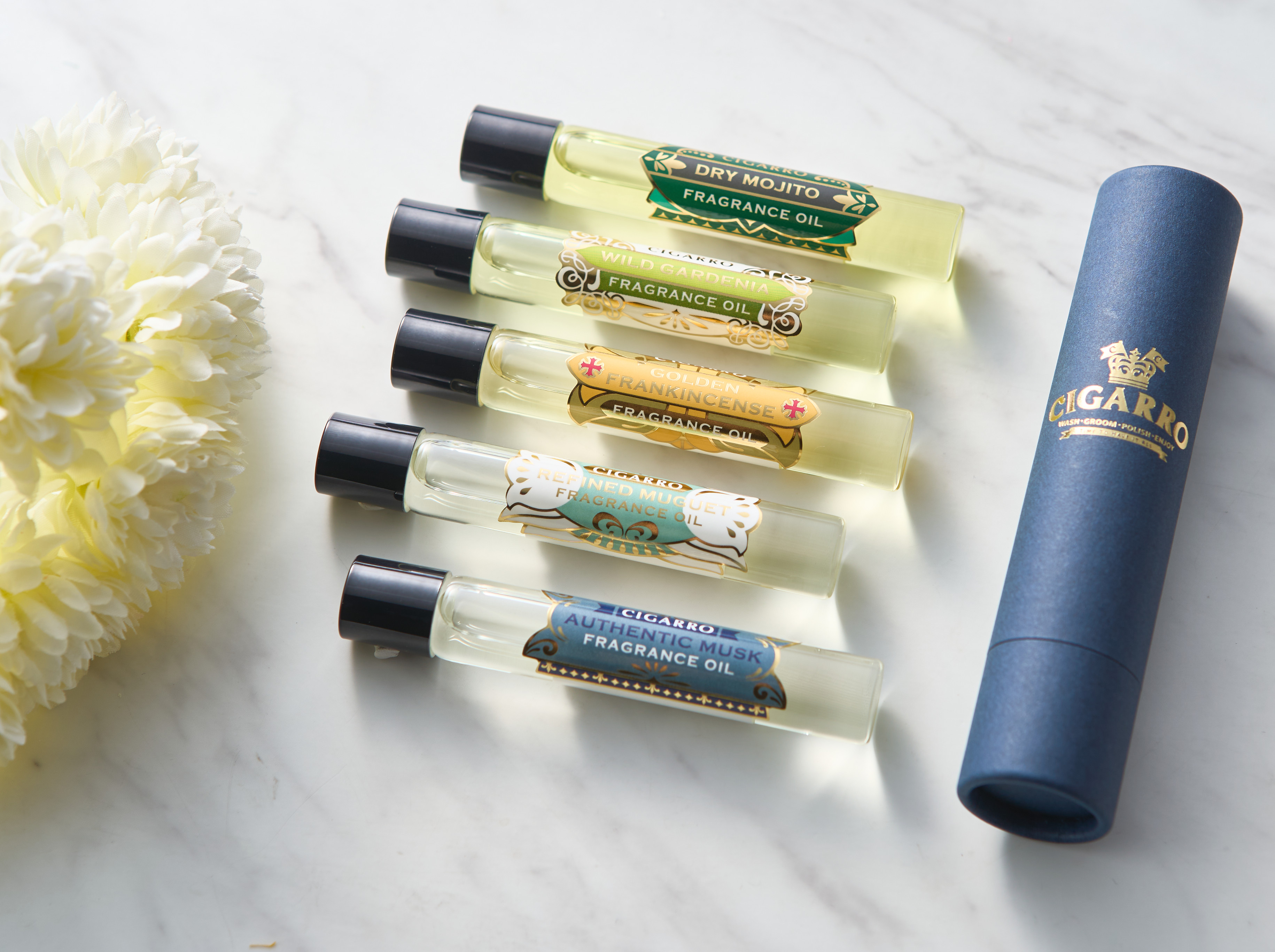 男性のためのパーソナルケアブランドCIGARRO(シガーロ)の「フレグランスオイル」は、植物オイルを配合したロールオンタイプのフレグランスです。CIGARRO(シガーロ)オリジナルの8種類の香りからお選びいただけます。 ご自身用はもちろん、クラシックなデザインのお洒落なパッケージで贈り物にもぴったり!人と被らない、こだわりギフトを選びたい方にもおすすめです。大切な方への贈り物にいかがでしょうか?