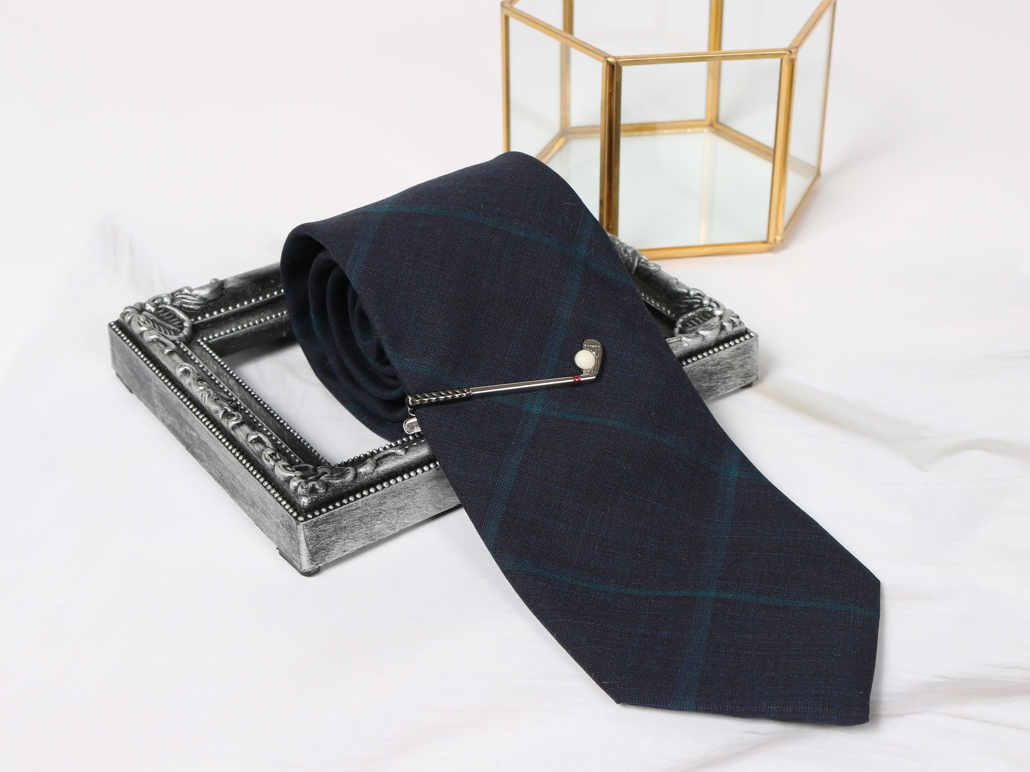 ネクタイやソックスなど、普段のスーツではあまりデザイン性のあるものが着用できない方でも、タイバーで遊び心のあるデザインを楽しむことできます。シンプルなネクタイにも映えるゴルフアイアンのデザインは、いつものファッションに楽しさを加えます。
