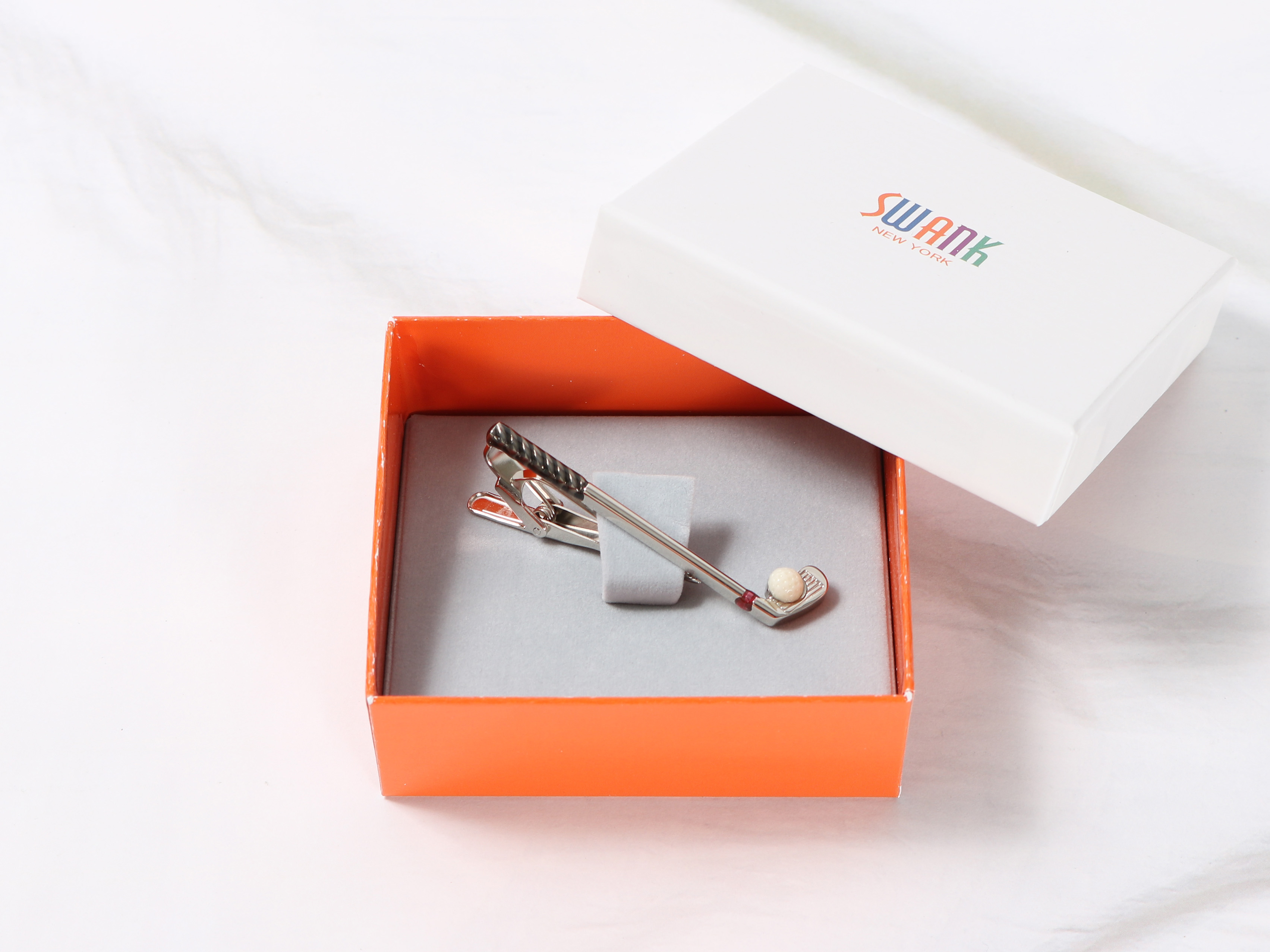 ニューヨークで1897年設立の老舗ジュエリーブランド「SWANK(スワンク)」のゴルフアイアンタイバーです。職人が一つ一つ丁寧に仕上げたゴルフクラブの先にはゴルフボールも付いています。胸元のアクセントにも重宝します。ゴルフが好きな方へのギフトにおすすめです。