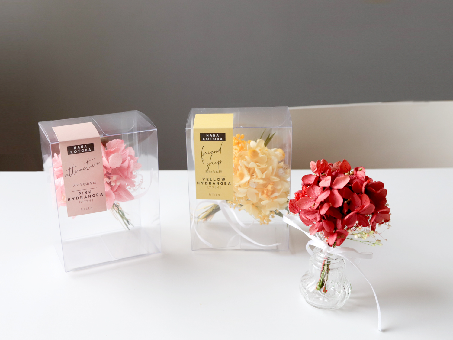 暮らしが楽しくなるお花にまつわるインテリアをお届けする「hikka(ヒッカ)」の、花言葉ブーケBOXミニです。お手入れ不要で美しい状態を長く楽しめる、ドライフラワーやプリザーブドフラワーを使用。各カラーで花言葉が異なり、贈るシーンや相手に合ったブーケを選べます。プチギフトとしておすすめ。