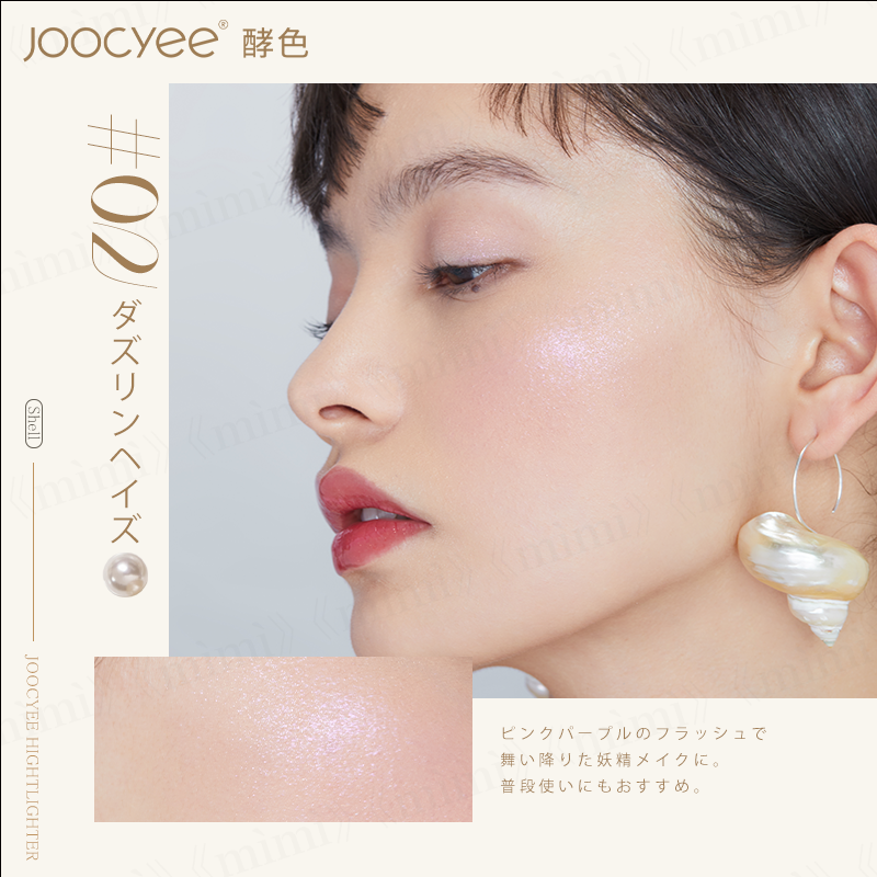 時が刻まれている貝殻からインスピレーションを得た、Joocyee貝殻シリーズのダイアモンドシェルハイライト。高反射オイル配合で光を包み込み、うるおう肌を演出します。肌へ優しく馴染み密着しやすいため、化粧落ちを防ぎます。ハイライトで透明感のあるお肌に。