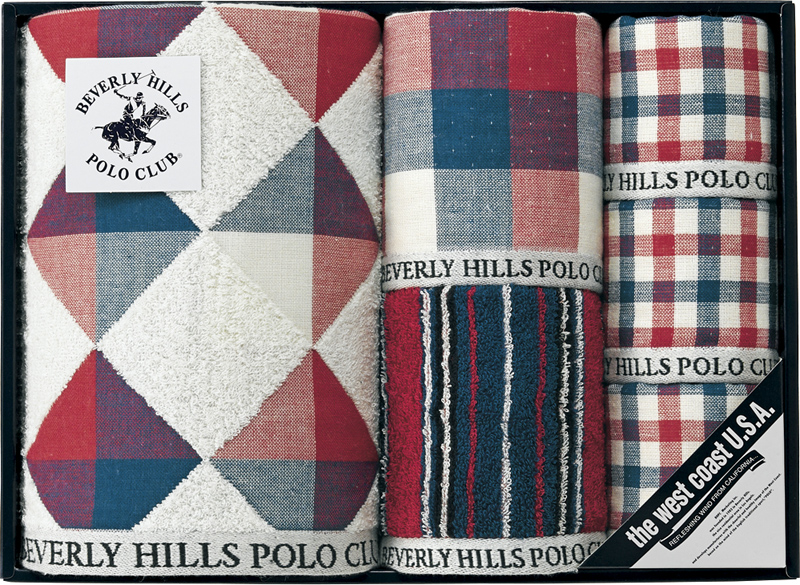Beverly Hillsで生まれた「BEVERLY HILLS POLO CLUB(ビバリーヒルズポロクラブ)」から、バスタオル、ウォッシュタオル、フェイスタオルのタオルセットです。トラッドチェックとトラッドストライプの組み合わせです。贈り物に最適なギフトボックスに入れてお届け。