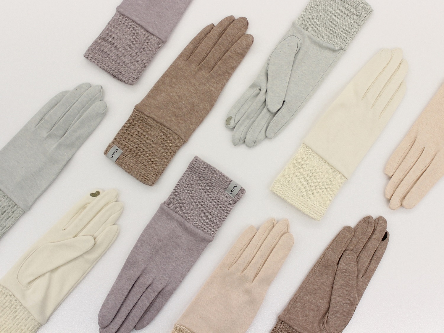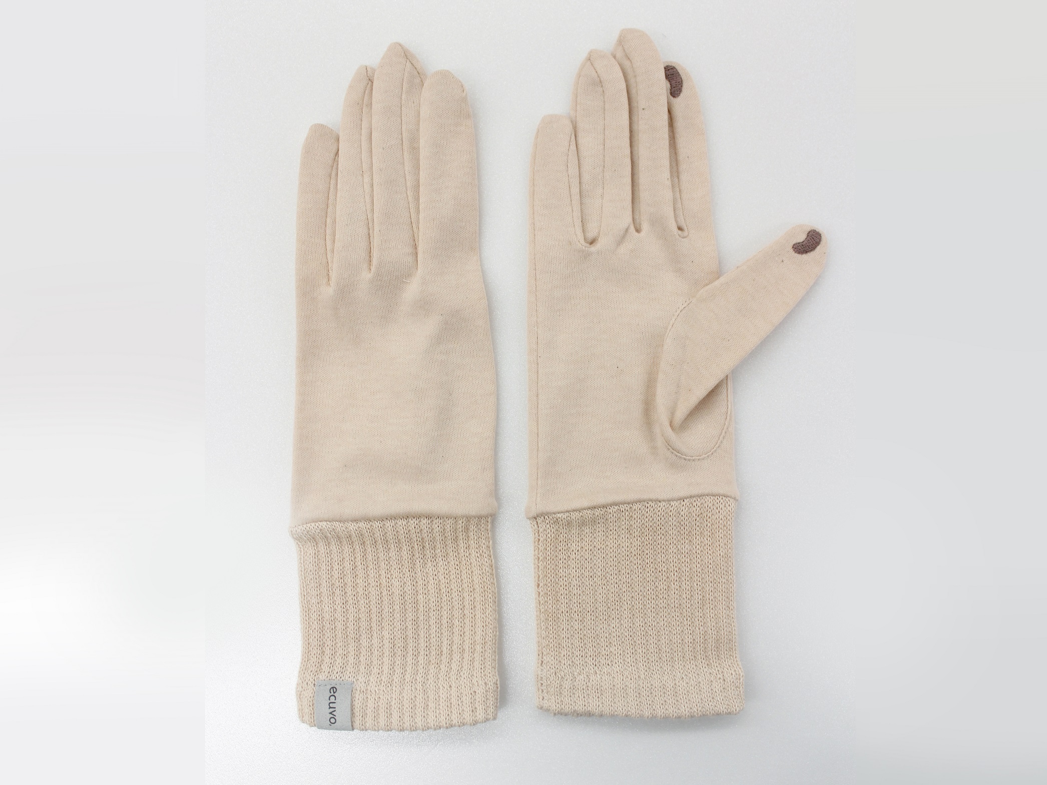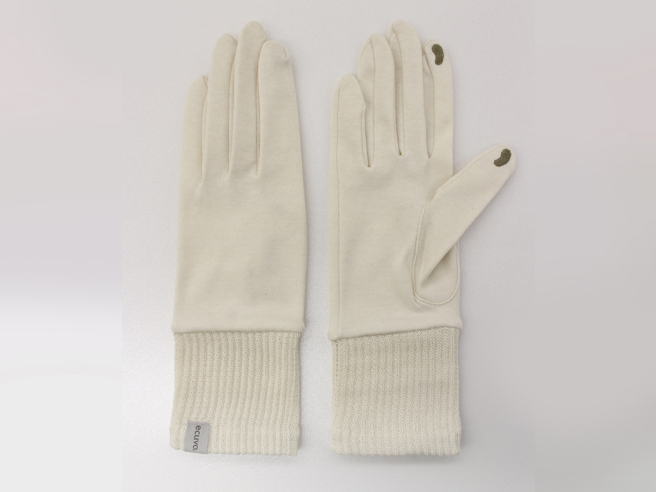 手袋の産地香川県東かがわ市で創業45年を迎える手袋会社のブランド「ecuvo,(エクボ)」のオーガニックコットン100%のUVケア手袋です。廃棄食品から染料を抽出し、生地を染め上げる手法で人と環境両方に優しい手袋。日焼け対策にもなり、肌に優しくて保湿効果もあるため肌が弱い方にもおすすめです。
