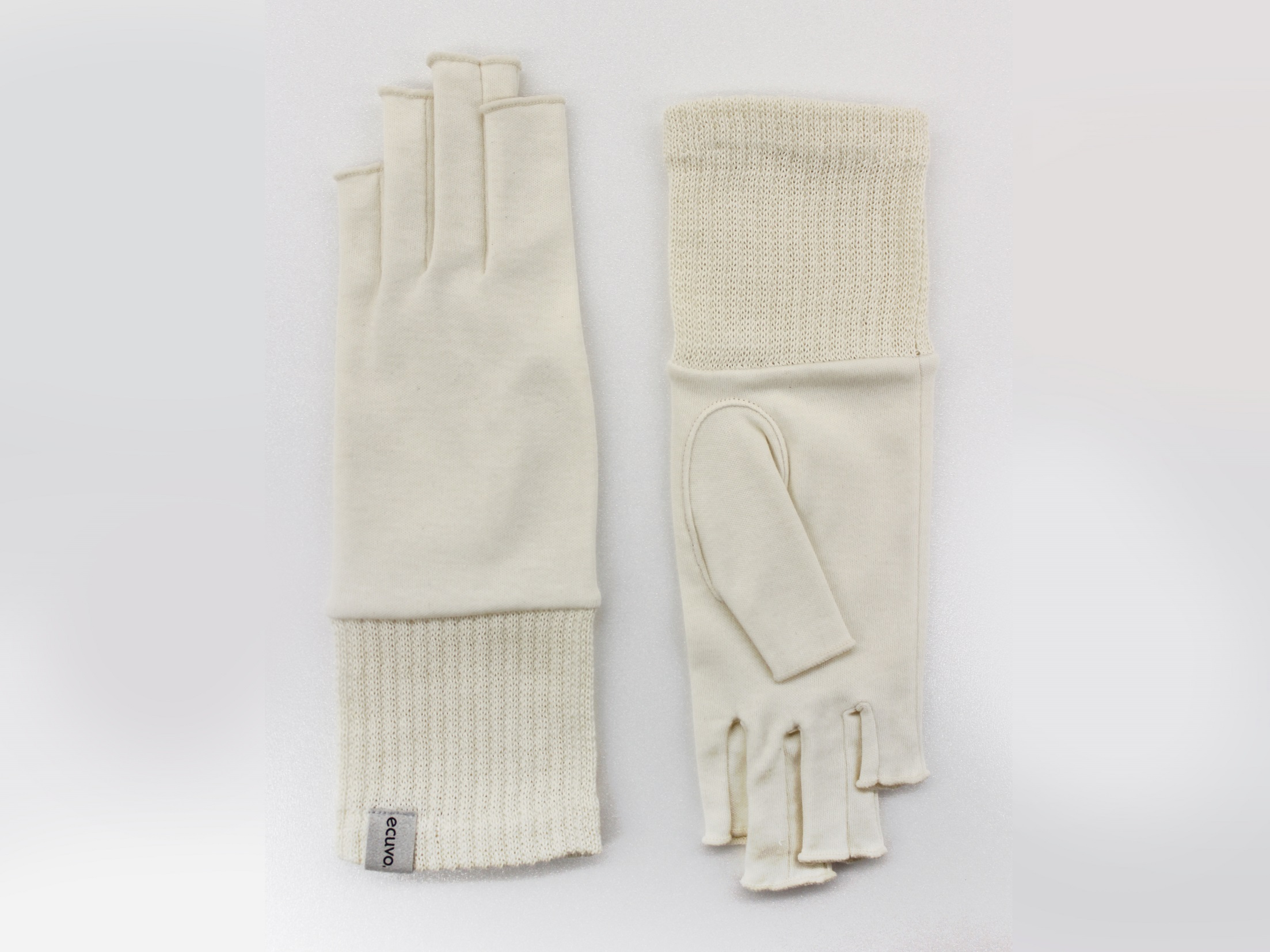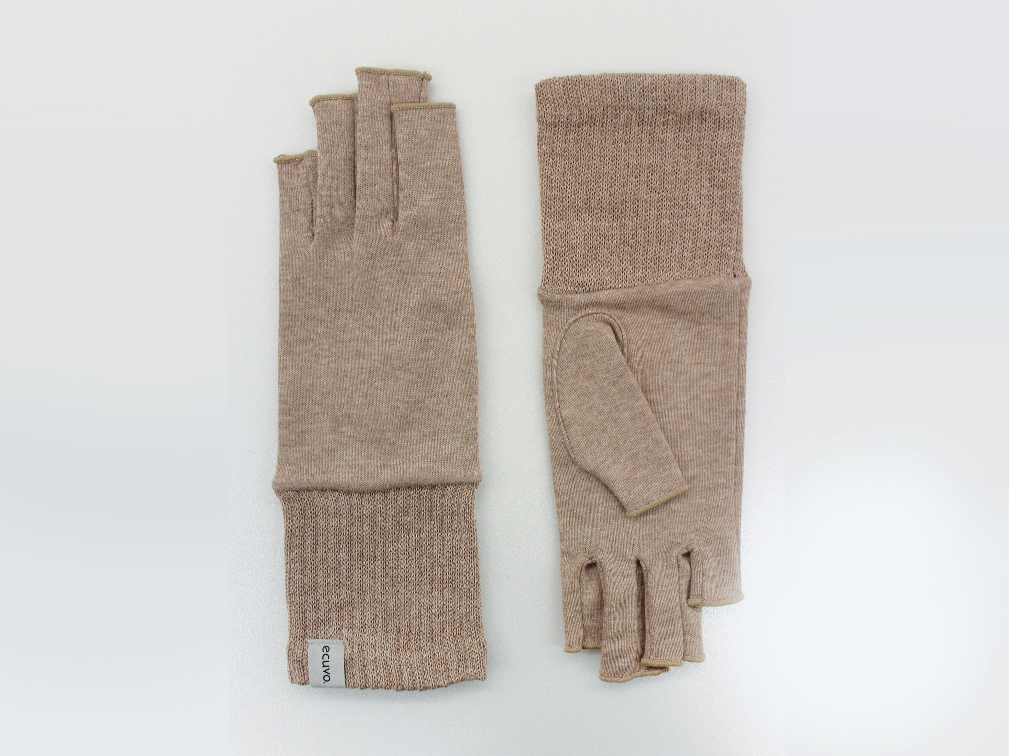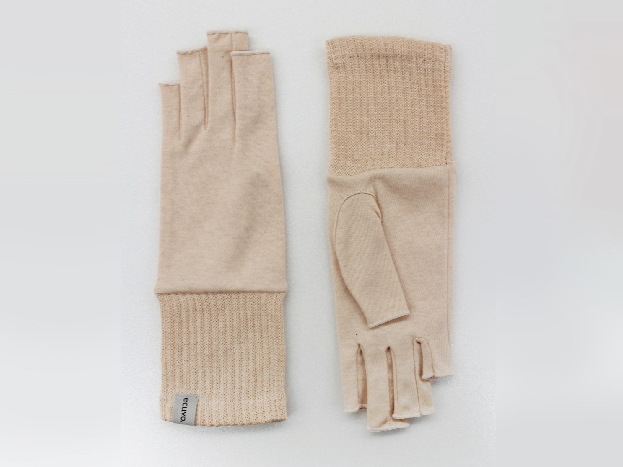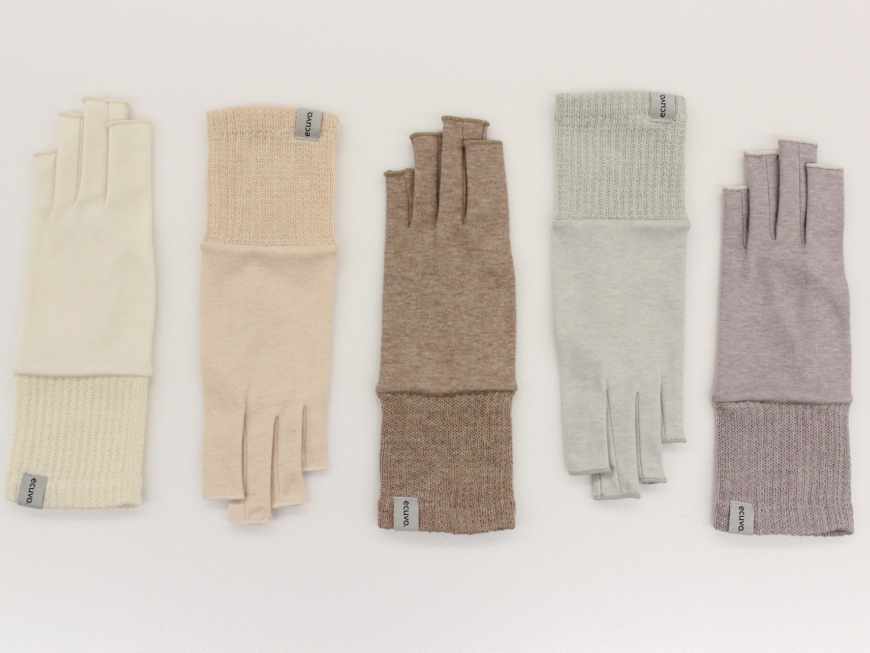 手袋の産地香川県東かがわ市で創業45年を迎える手袋会社のブランド「ecuvo,(エクボ)」のオーガニックコットン100%のUVケア手袋です。廃棄食品から染料を抽出し、生地を染め上げる手法で人と環境両方に優しい手袋。日焼け対策にもなり、肌に優しくて保湿効果もあるため肌が弱い方にもおすすめです。