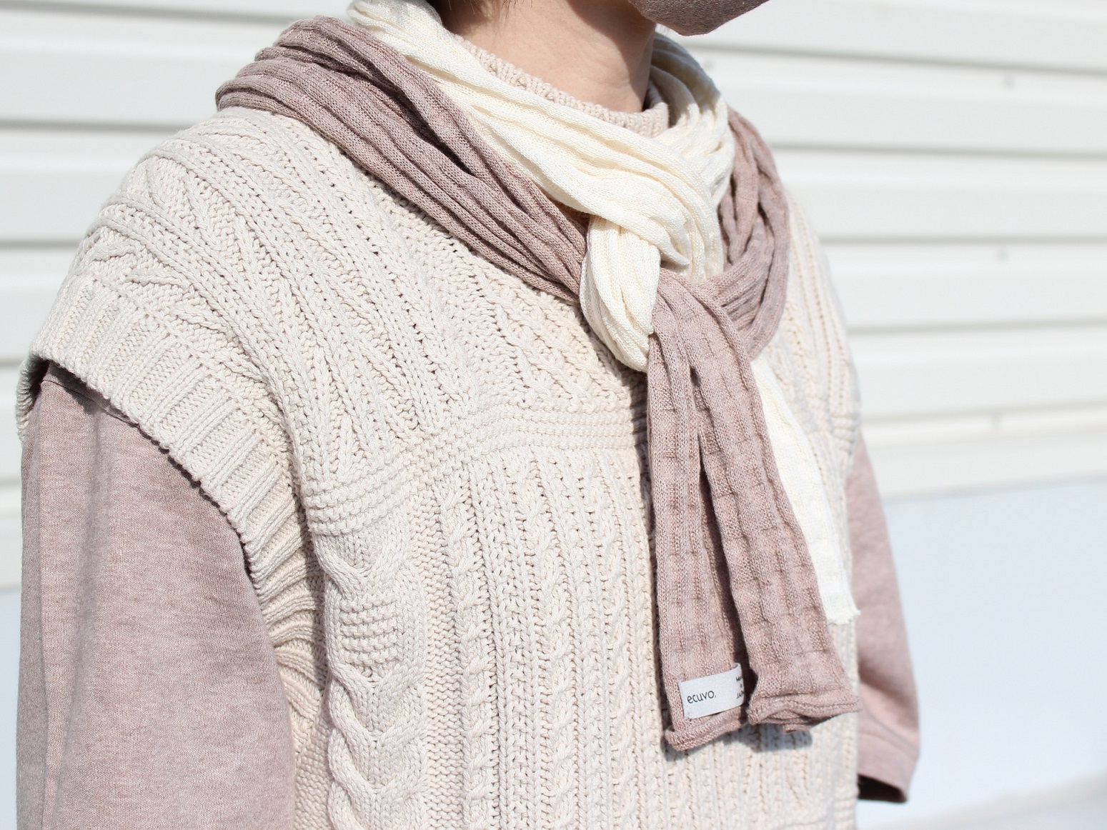 廃棄予定の野菜などから抽出した染料で染色したオーガニックコットンの糸や生地をecuvo yarnとして使用しています。また、染色を施していないオーガニックコットン本来の色味を活かした商品もあります。