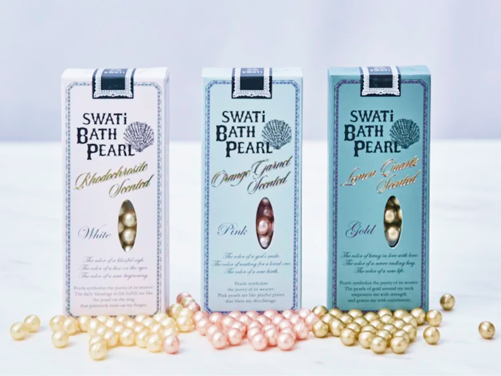 SWATi人気No.1のオリジナル入浴料「バスパール」の、3種の香りを楽しめる「SWATi BATH PEARL COLLECTION」。パールをモチーフにした入浴料が湯船の中で徐々に溶け出し、ラグジュアリーな香りがバスルームいっぱいに広がります。また、お湯が乳白色に変化し、しっとりなめらかなお肌に!