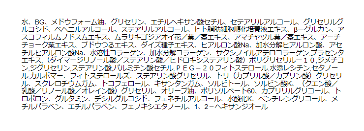 | 使用上の注意・使用法 | お肌に異常が生じてないかよく注意してご使用ください。化粧品がお肌に合わない即ち次のような場合には、ご使用を中止してください。そのまま化粧品類の使用を続けますと、症状を悪化させることがありますので、皮膚科専門医等にご相談されることをおすすめいたします。 ・使用中、はれ、かゆみ、刺激、色抜け(白斑等)や黒ずみ等の異常があらわれた場合。 ・使用したお肌に、直射日光が当たって上記のような異常があらわれた場合。 傷やはれもの、湿疹等、異常がある部位にはお使いにならないでください。 |