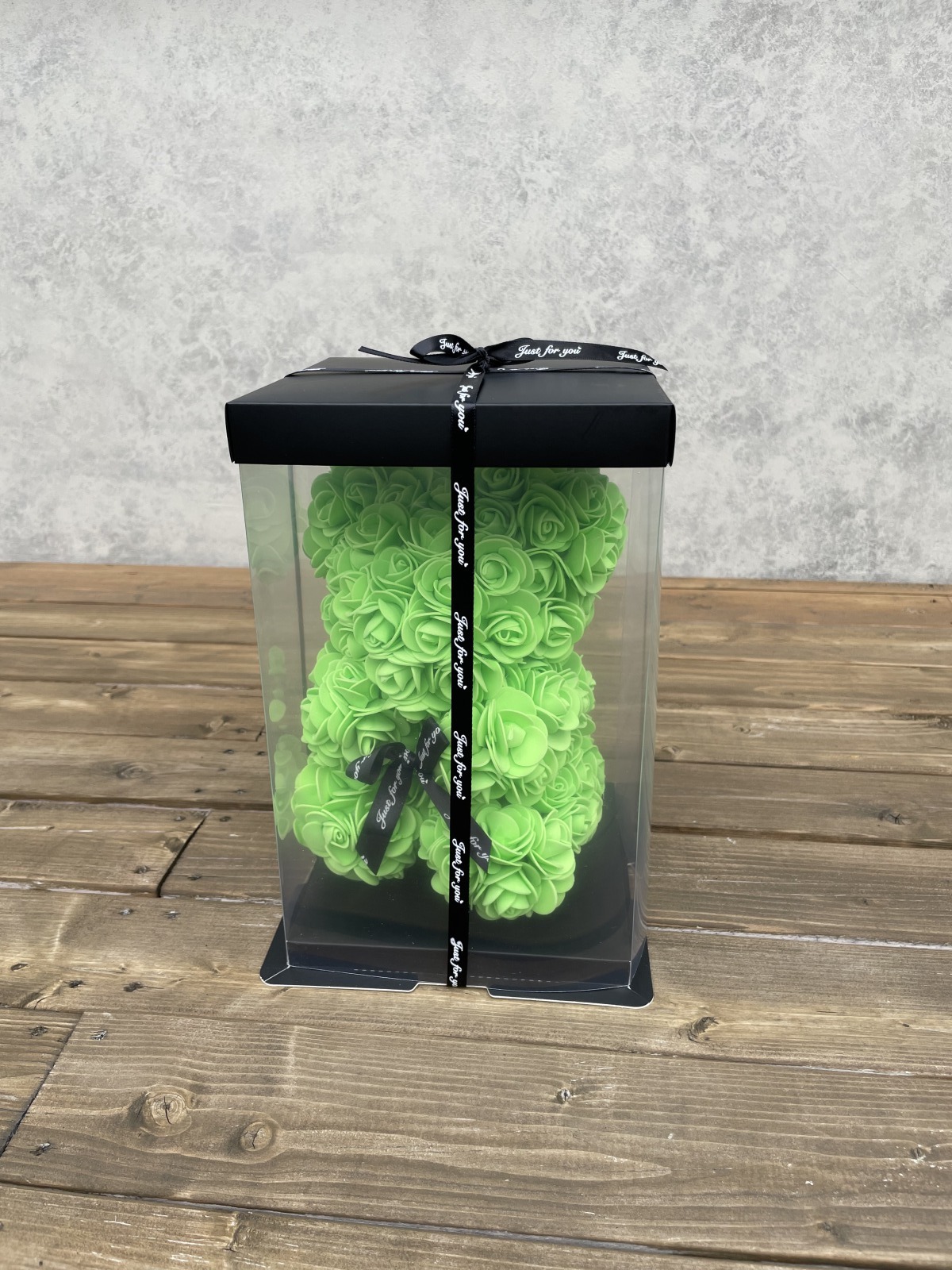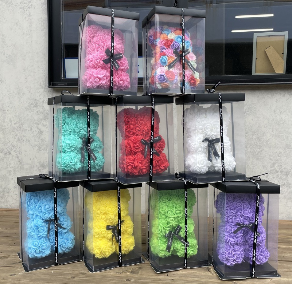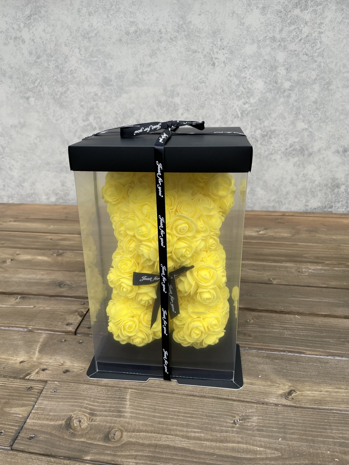 大口注文・法人のお問い合わせはこちらブレゼントに人気のローズベアに、メッセージプレートが付いた特別感のあるギフトです。 カラーバリエーションも豊富で、贈りたい方に合わせてお選びいただけます。 造花なので、軽くて持ち運びやすいのもいいですね。ケース付きなのでそのままインテリアとして飾っていただけます。