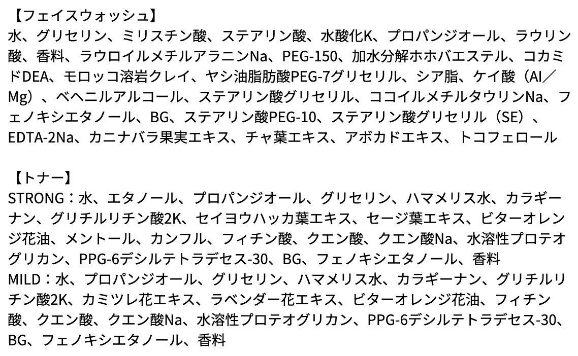 | 商品本体重量/内容量 | 【フェイスウォッシュ】90g 【トナー】126g/100ml |