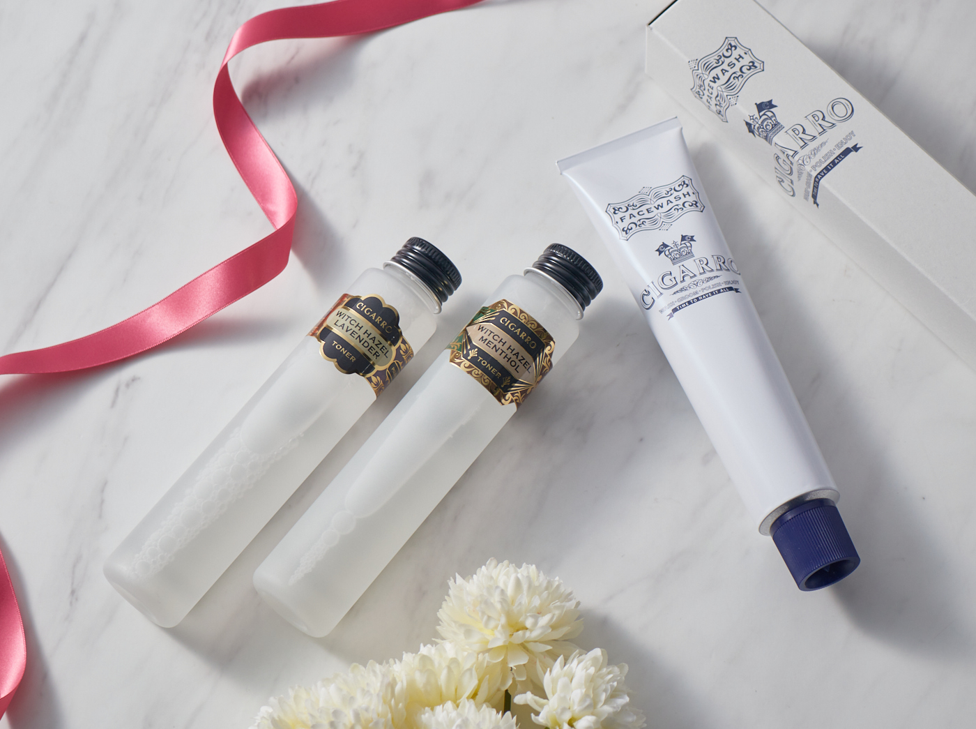 「CIGARRO(シガーロ)」の男性のためのフェイスケアセット。うるおいを与える保湿タイプのフェイスウォッシュと、肌をすっきり整えながらしっかり潤いを与えるトナーがセットになっています。トナーは、お肌に合わせて2種類から選択可能。おしゃれなパッケージで贈り物にもぴったり!
