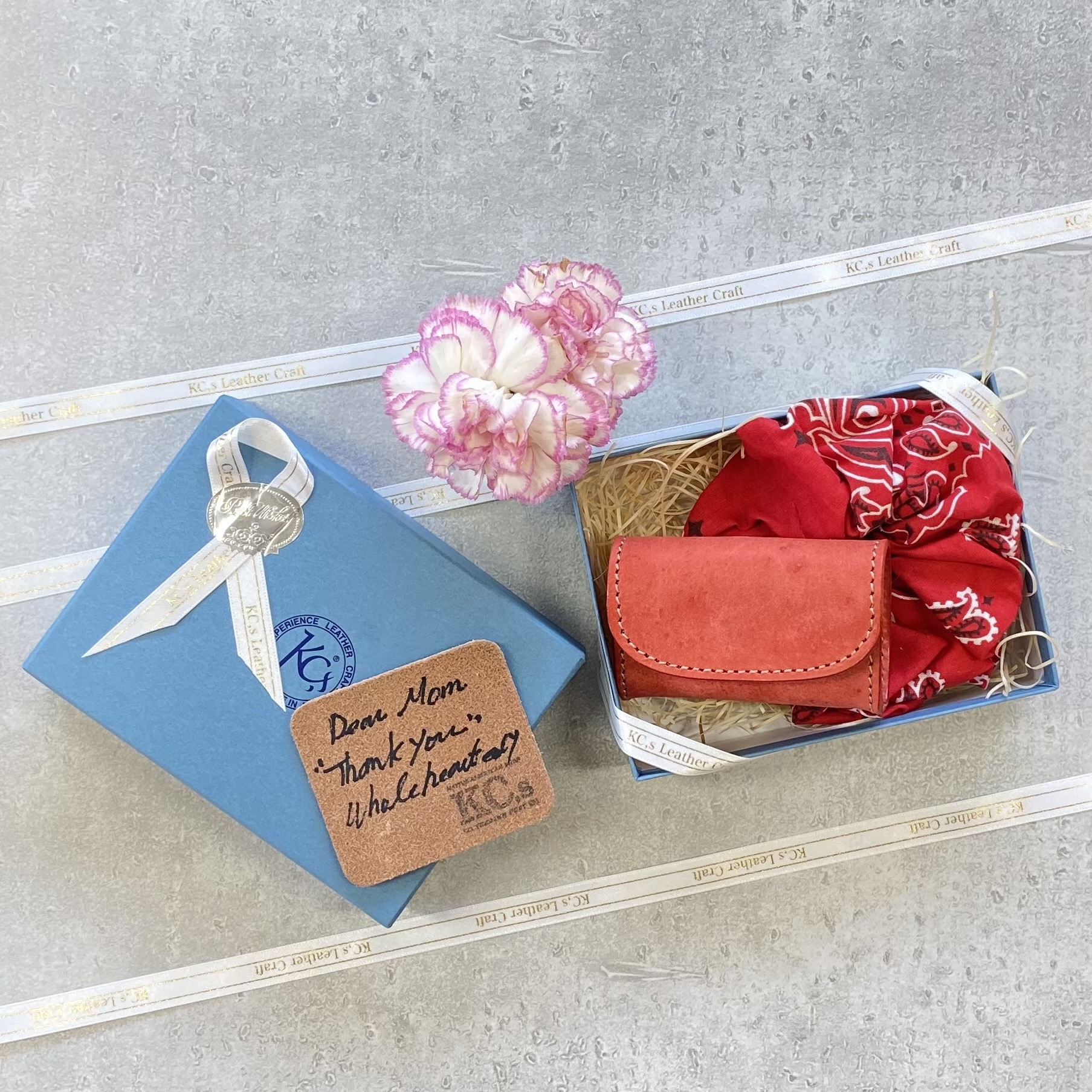 手作りに拘った『ホンモノの革製品』を求め続けている「KC,s(ケイシイズ)」から、コンパクトながら大容量のコインケースとカラフルなバンダナシュシュのセットです。