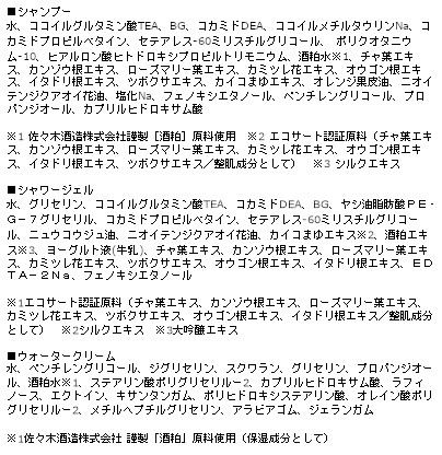 大口注文・法人のお問い合わせはこちらシャンプー、シャワージェル、ウォータークリームの豪華な3本セットです。クラシックで重厚感のあるオリジナルギフトボックスでご用意しました。 シャンプーとシャワージェルには保湿成分として、京都の老舗酒造から仕入れた酒粕エキスを使用。そしてウォータークリームは、酒造りに使われる地下水「銀明水」がベースとなっています。 お誕生日や記念日の贈り物など、日頃の感謝を贈られる際にぜひお役立てください。