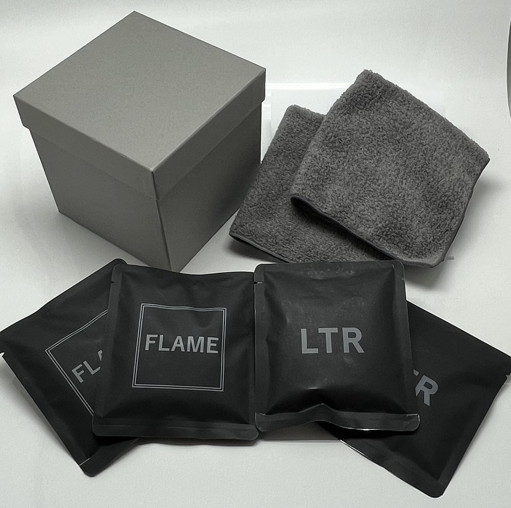 | セット内容 | バスソルト2種(LTR ・FLAME)×2袋 ハンドタオル(ブラック)2枚 |