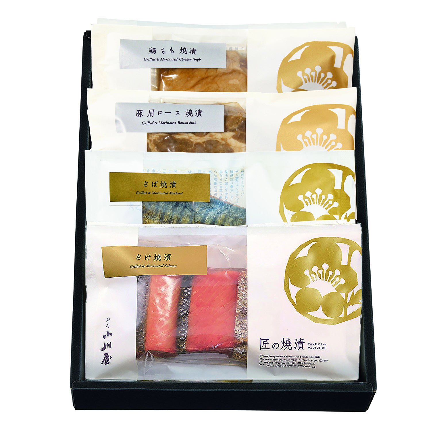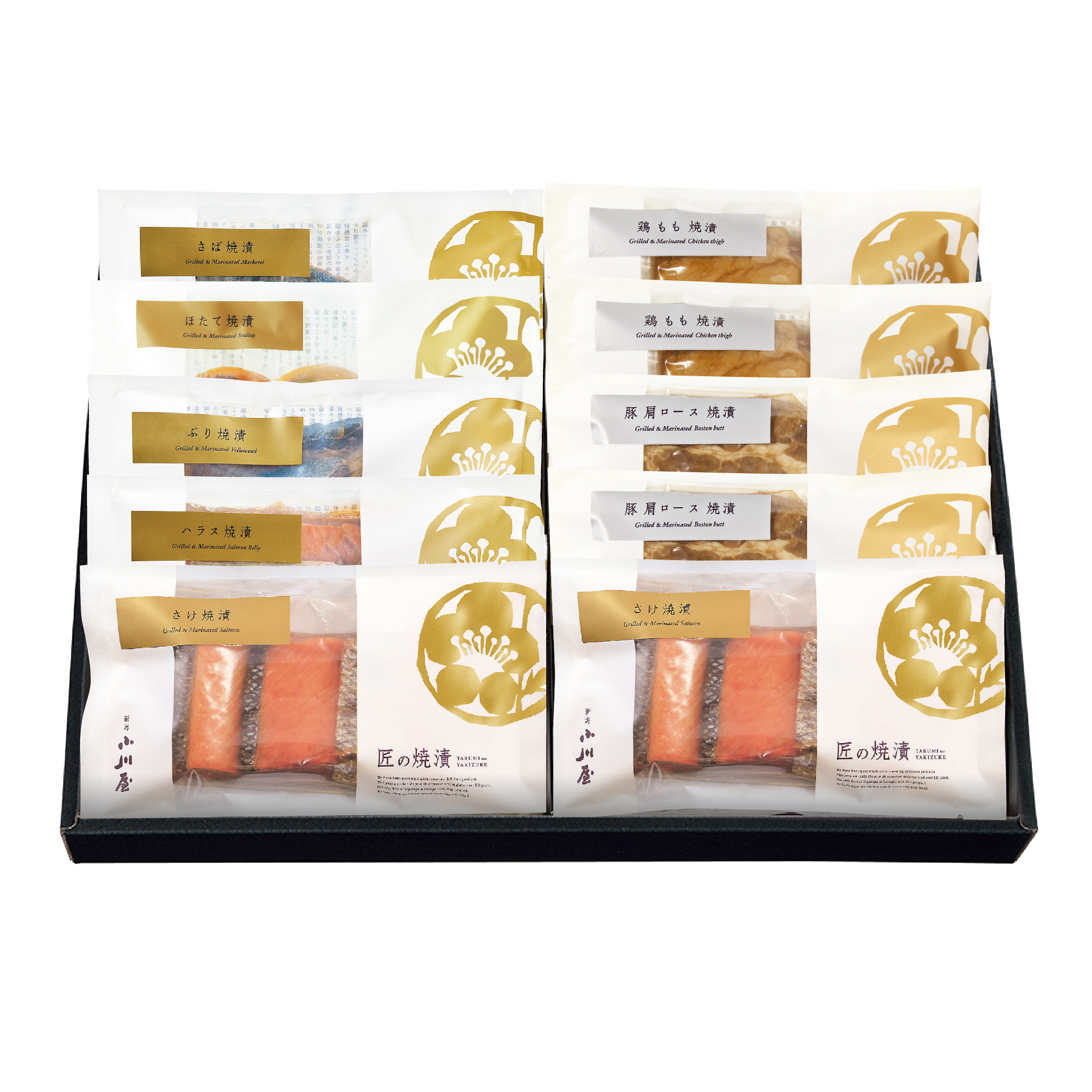 明治26年(1893年)創業の小川屋自慢の逸品、白焼きした魚を醤油ベースのタレに漬け込む新潟の郷土料理「匠の焼漬」と創業126年目で誕生した「お肉の焼漬」を詰合せにしました。