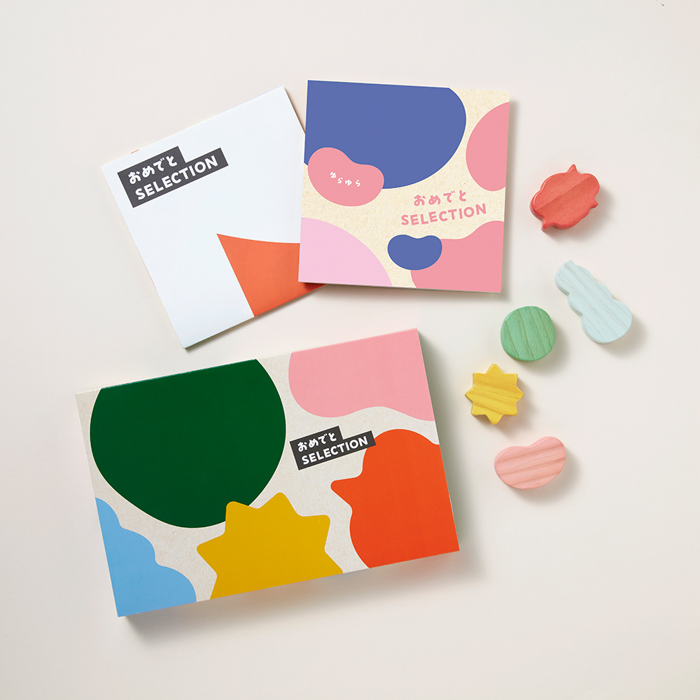 『おめでとセレクション』は、出産祝いやベビーのお誕生日プレゼントにぴったり。知育遊びを促すオリジナルのおもちゃ付きで「貰った瞬間から嬉しい」ギフトカタログです。オノマトペがモチーフのポップでかわいいデザインと、「ベビーを迎えたばかりのママとパパが本当にほしいもの」「子どもが笑顔になるもの」を集めた商品ラインナップも魅力的な、ベビーギフトの新定番です。