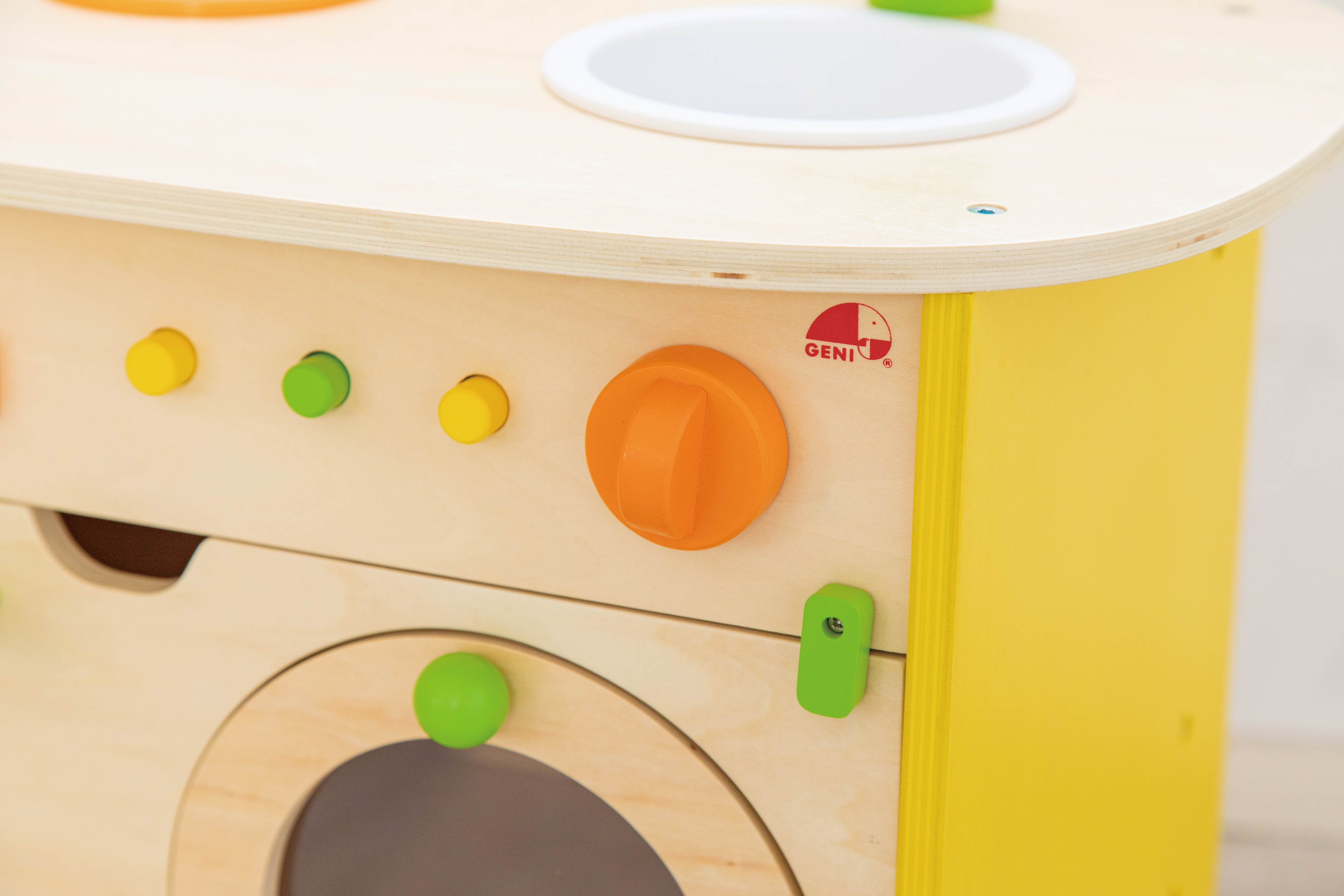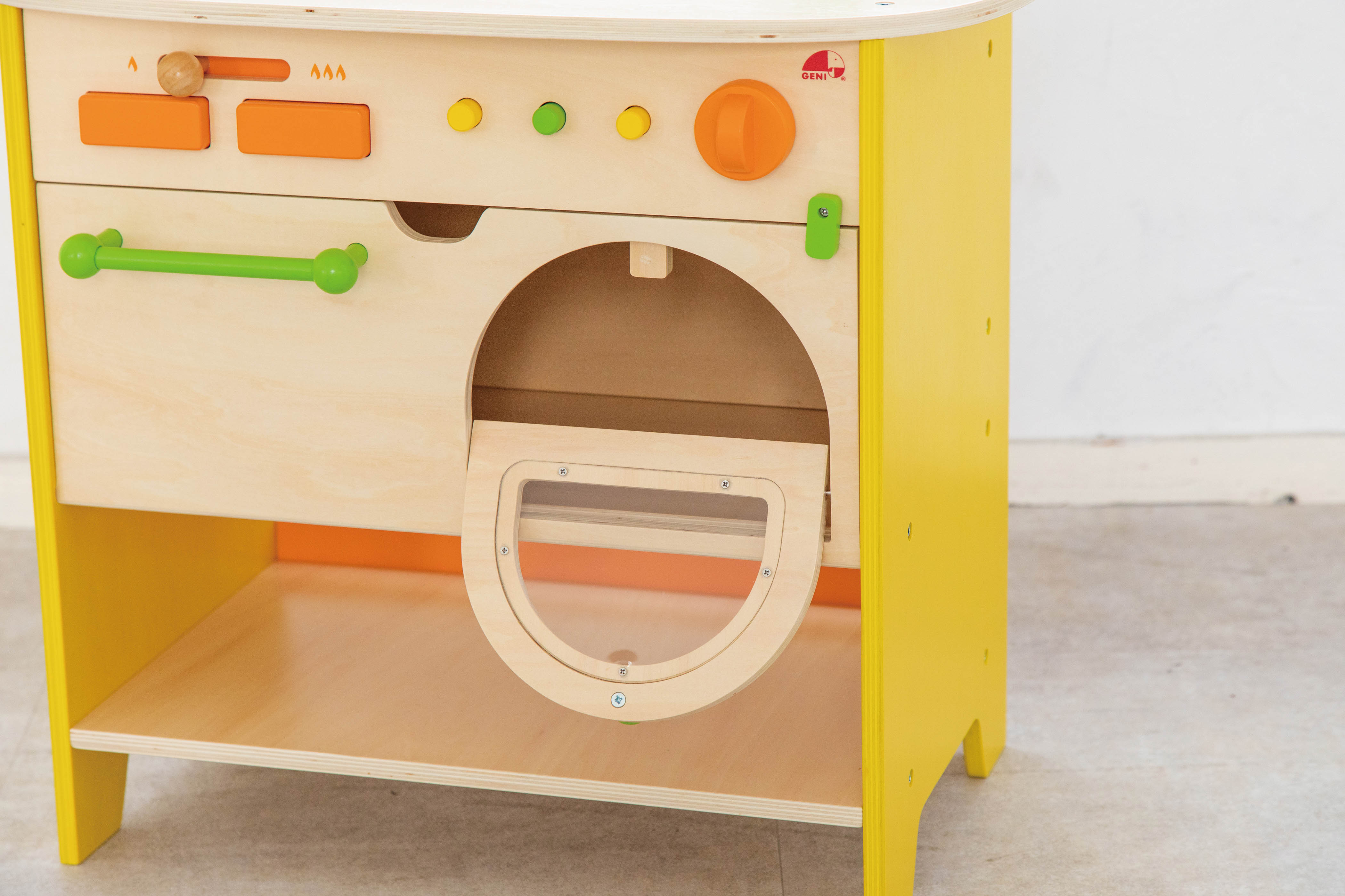 インテリアを邪魔せずリビングに合うスタイリッシュなデザインのアイランド型(対面型)のキッチンです。対面でおしゃべりしながらおままごとをしていると笑顔が溢れたり、マガジンを置くラックもついているのでお店屋さんとしても楽しめます。コロナ禍にお部屋の中でお子様の笑顔をたくさん見たい!そんなご希望を叶えてくれる商品です。
