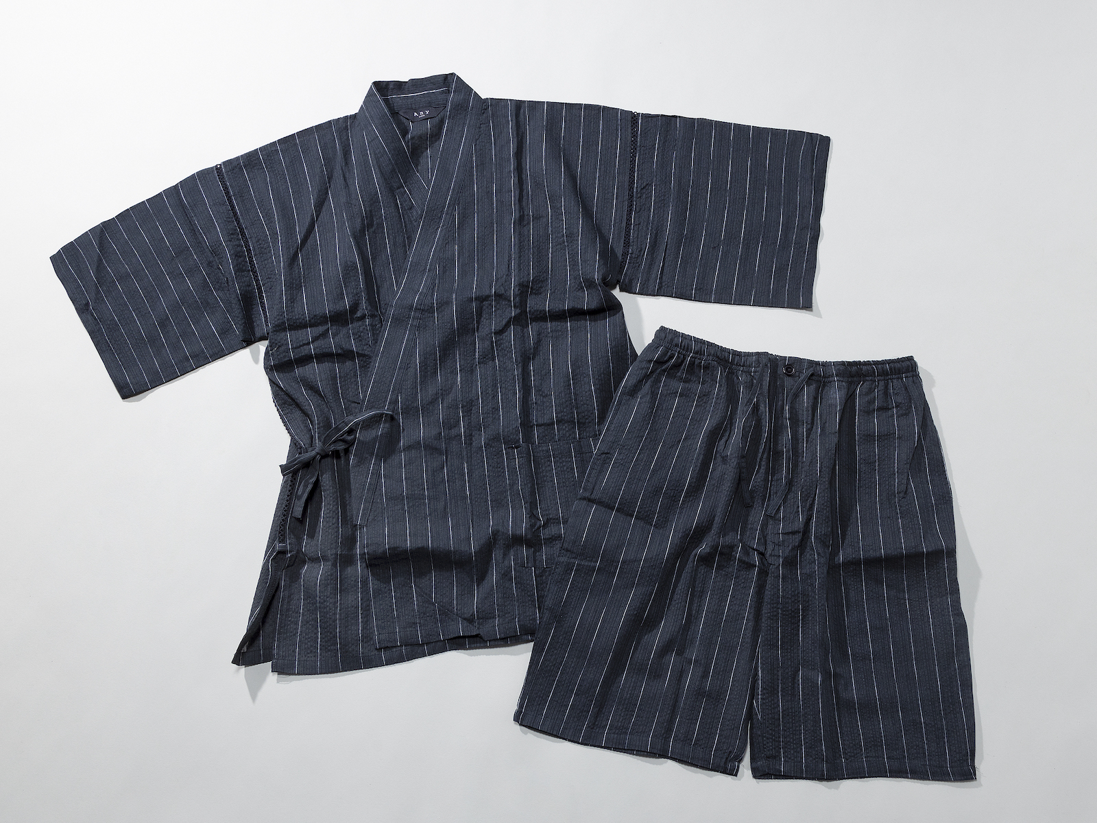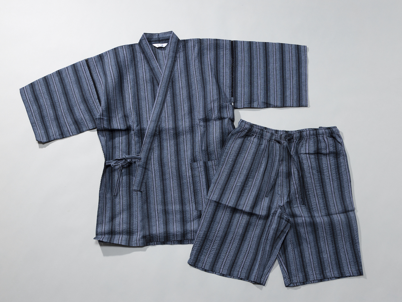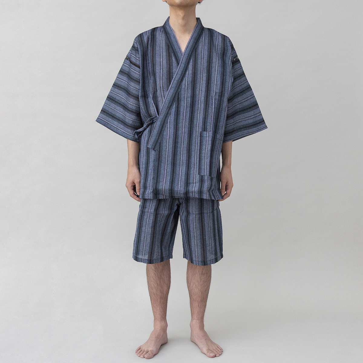 麻混で仕上げた非常に着心地が良い男性用甚平です。上着、ズボンの後にポケットを付けており、しっかりとした作りで仕上げました。 甚平の特徴はなんといってもその風通しの良さ。日本の蒸し暑い夏を乗り越えるのにぴったりの部屋着です。見た目にも涼しく、今までと一味違った夏を過ごしてもらえること間違いなし。 サイズはM、L、LLの3種類、カラーはブラック、グレー、ブルーの3種類からお選びいただけます。