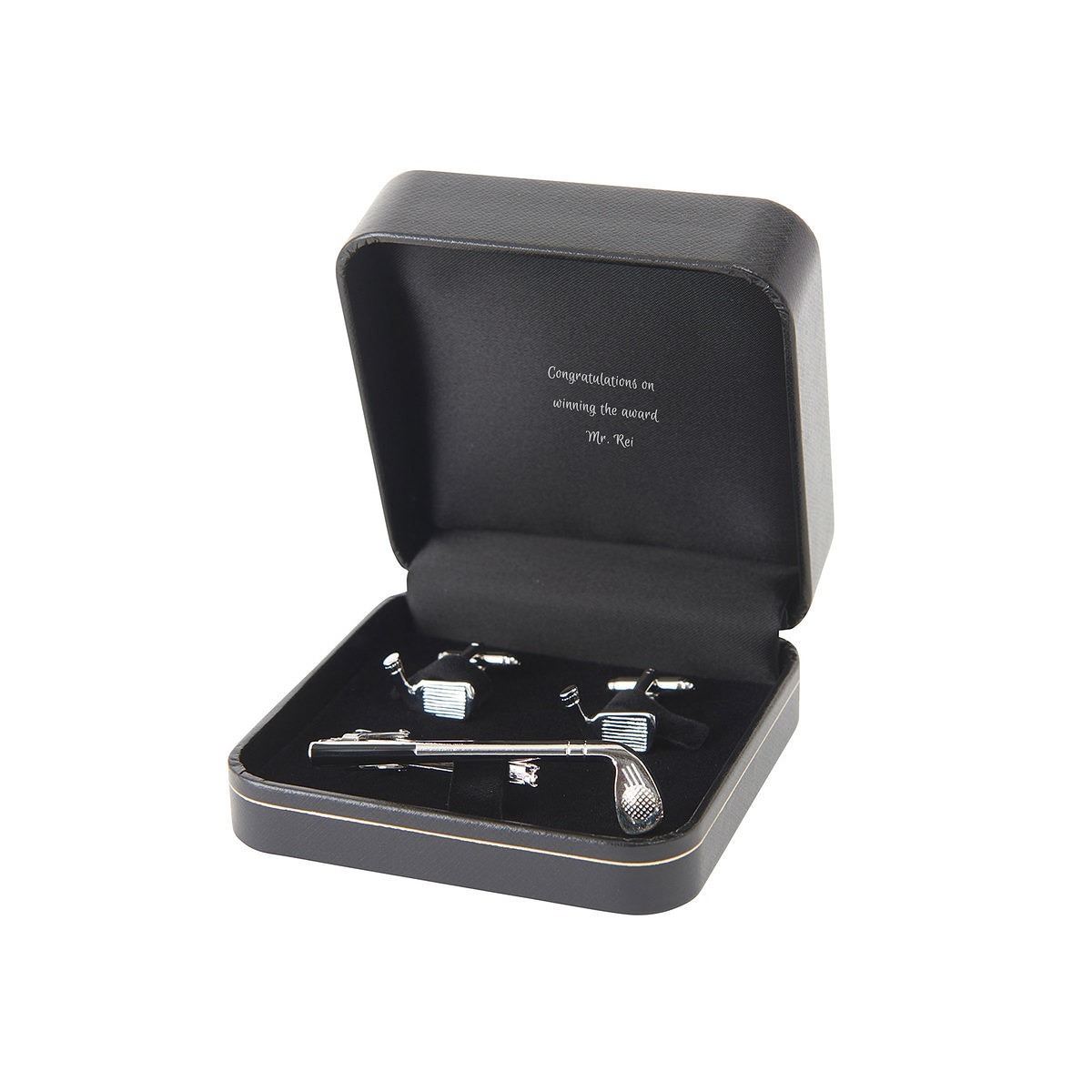 | サイズ | ゴルフ 約 W65 x H17 x D18 mm (ネクタイピン), 約 W19 x H13 x D24 mm (カフスボタン) ロケットと地球儀 約 W60 x H12 x D19 mm (ネクタイピン), 約 W18 x H18 x D21 mm (カフスボタン) 万年筆とペン先 約 W50 x H8 x D19 mm (ネクタイピン), 約 W8 x H20 x D24 mm (カフスボタン) |