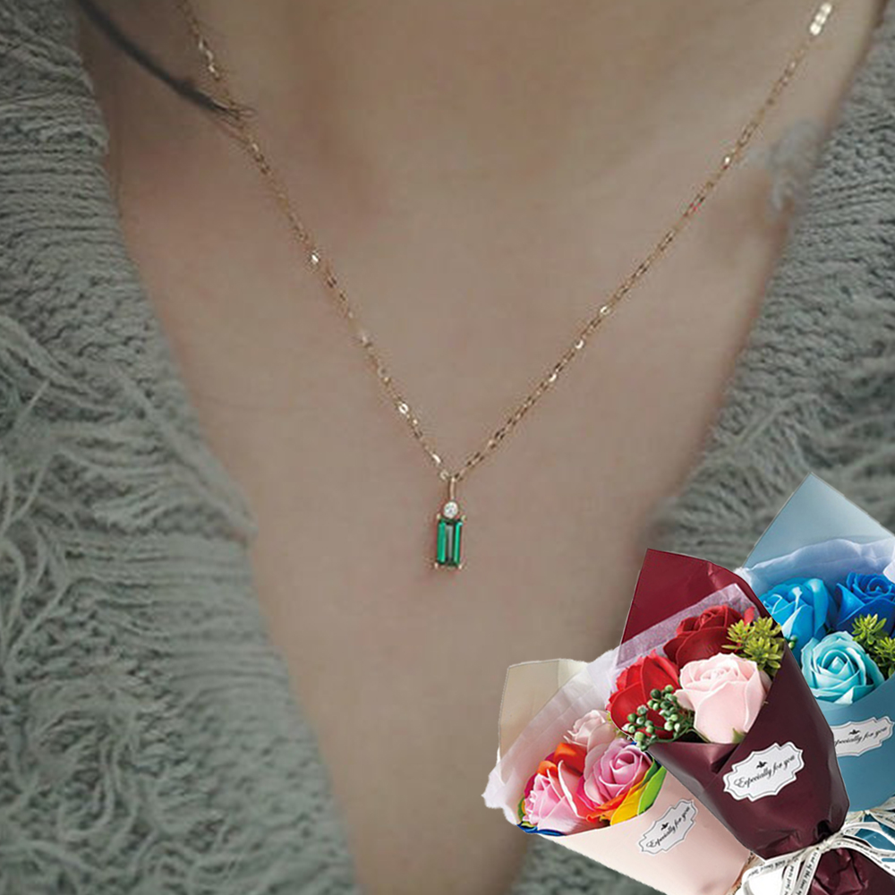 シンプルながらグリーンクリスタルの石が存在感を放つネックレスです。ワンポイントでパッと華やかな印象を与えます。ジュエリーだけではなくお花のプレゼントとしても喜んでいただけるようにソープブーケとセットにしました!6色からお選びいただけます。