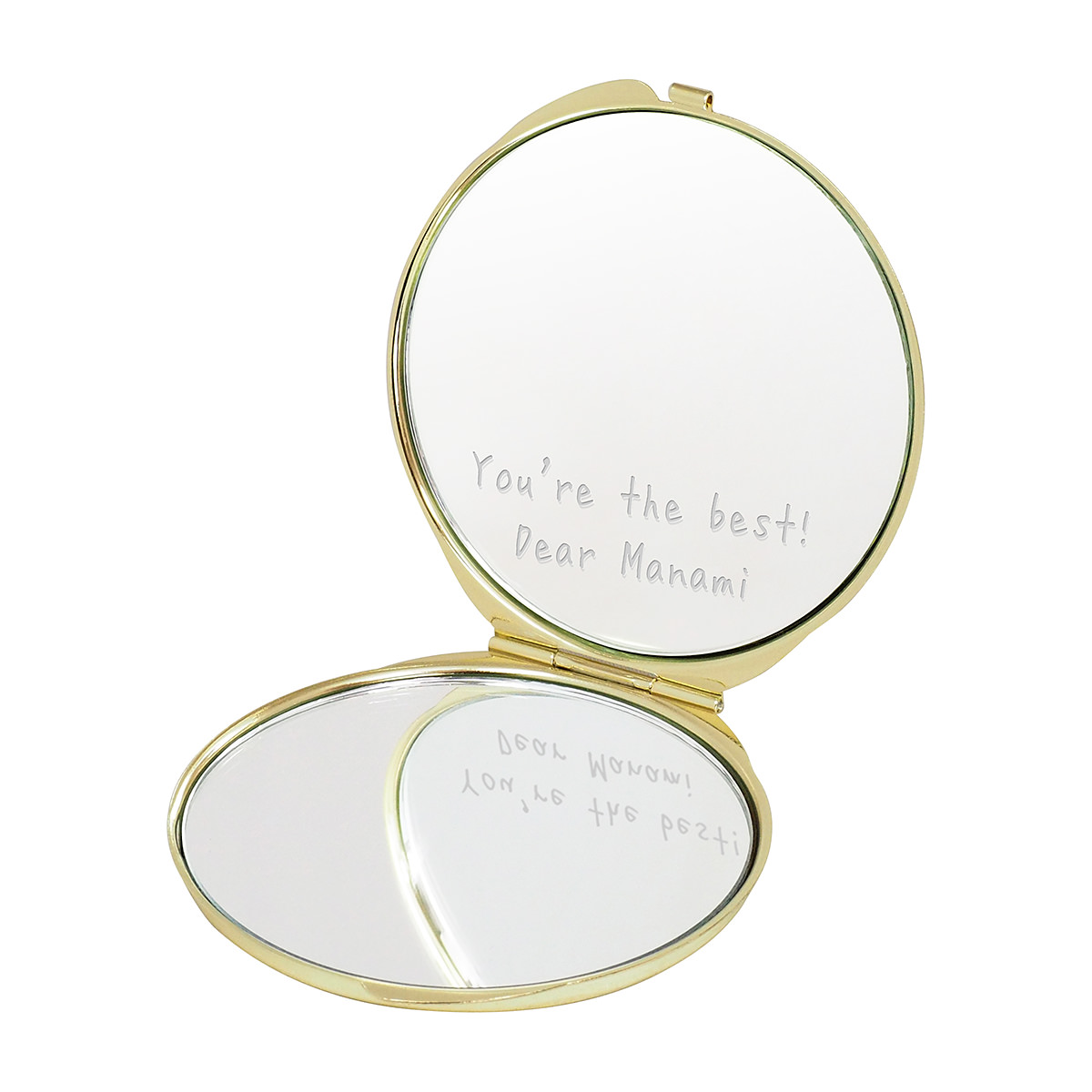 中の鏡にはメッセージを入れる事ができ、開くたびに思い出す事ができる、自然と笑顔になってしまうミラーになっています。