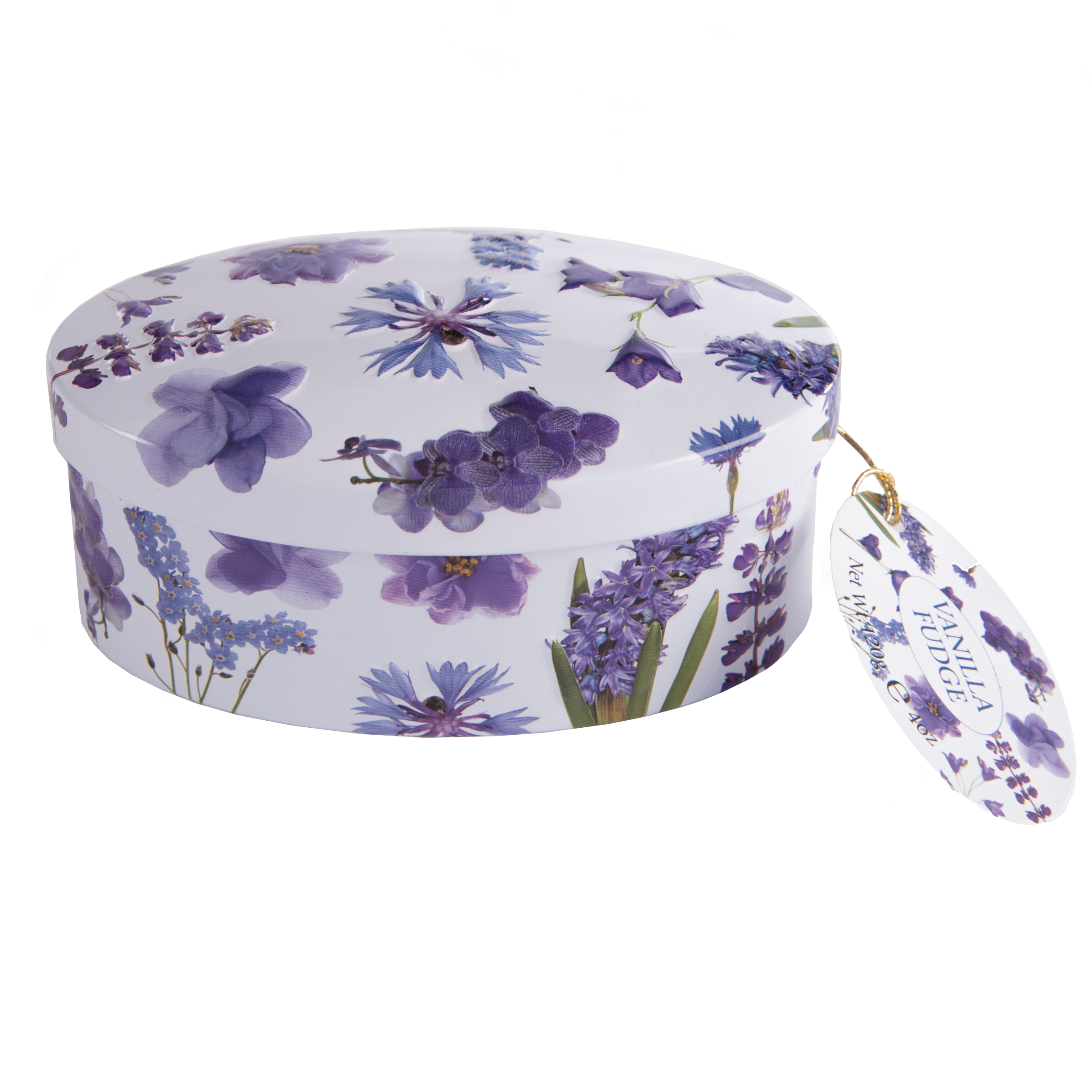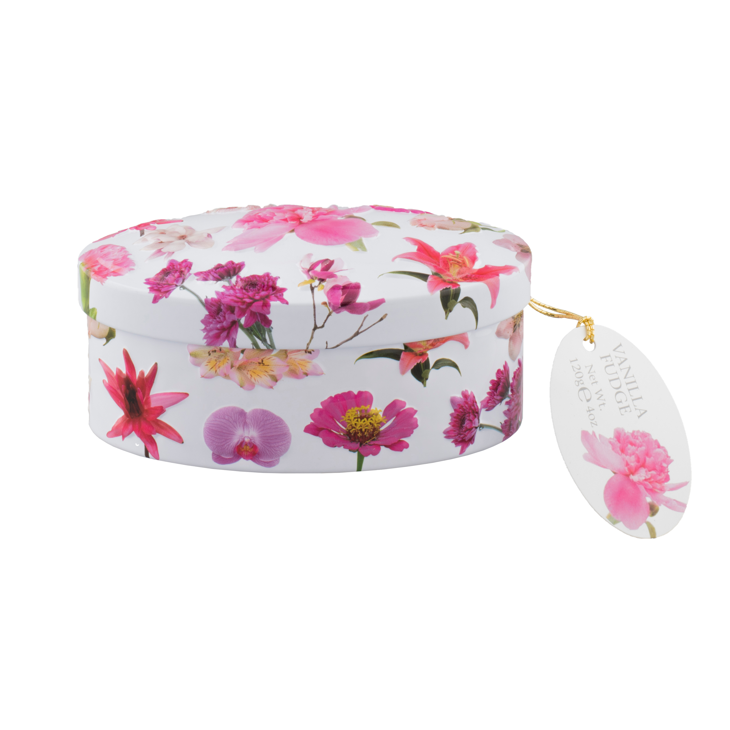 大口注文・法人のお問い合わせはこちら天然由来の香料を使用したイギリス・スコットランド伝統のファッジを、2種類の美しいフラワーデザインの缶にお入れしてお届け。 おしゃれな缶は中身のファッジを食べ終わった後に、小物入れとしてお使いいただけます。