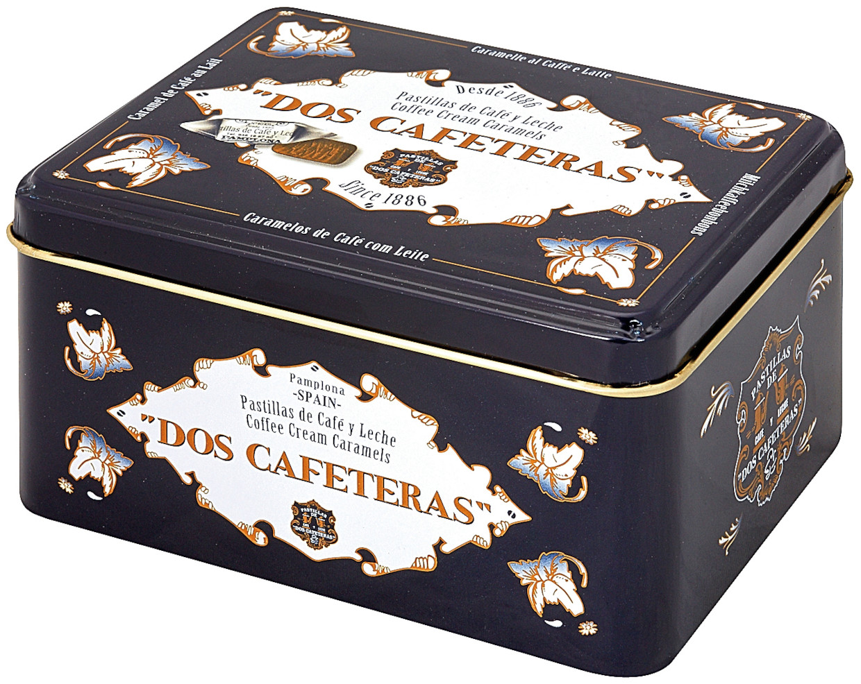 1886年スペインのパンプローナにて、あるシェフが使い慣れた銅の鍋でミルク、砂糖、水飴を調合し、そこにコーヒーエキスを加えて辛抱強くかき混ぜていたらおいしいキャラメルが完成。これがDOS CAFETERASのキャラメルのレシピの誕生のきっかけです。 このキャラメルを発売したところたちまち評判となり、スペイン中に知られることになりました。 現在も1886年当時と変わらぬレシピで、じっくり時間をかけて製造を行っています。