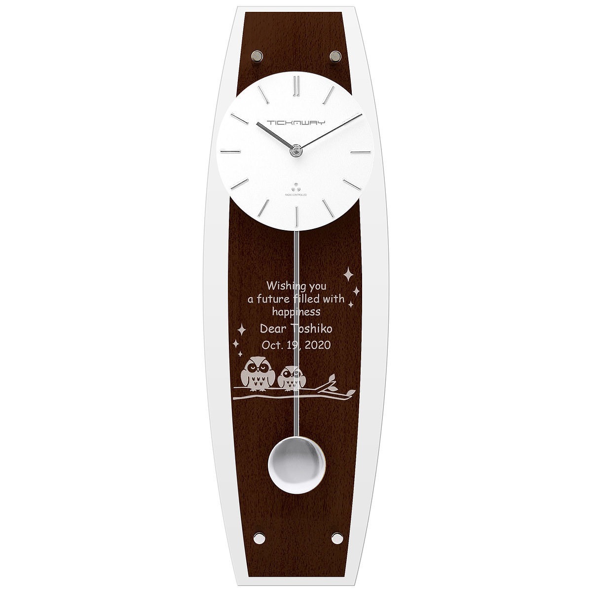 木の風合いが優しい、振り子のついた壁掛け時計です。振り子が揺れる様子はどこか懐かしい雰囲気。