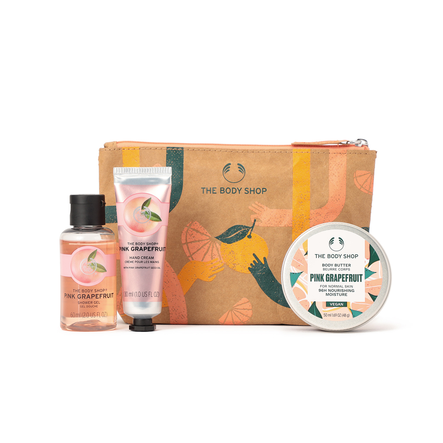 はじけるような爽やかなピンクグレープフルーツの香り。 すっきりと洗い上げるミニボディシャンプー、肌をしっとりと整えるミニボディクリーム、手肌にさらっとなじむハンドクリームのセットです。