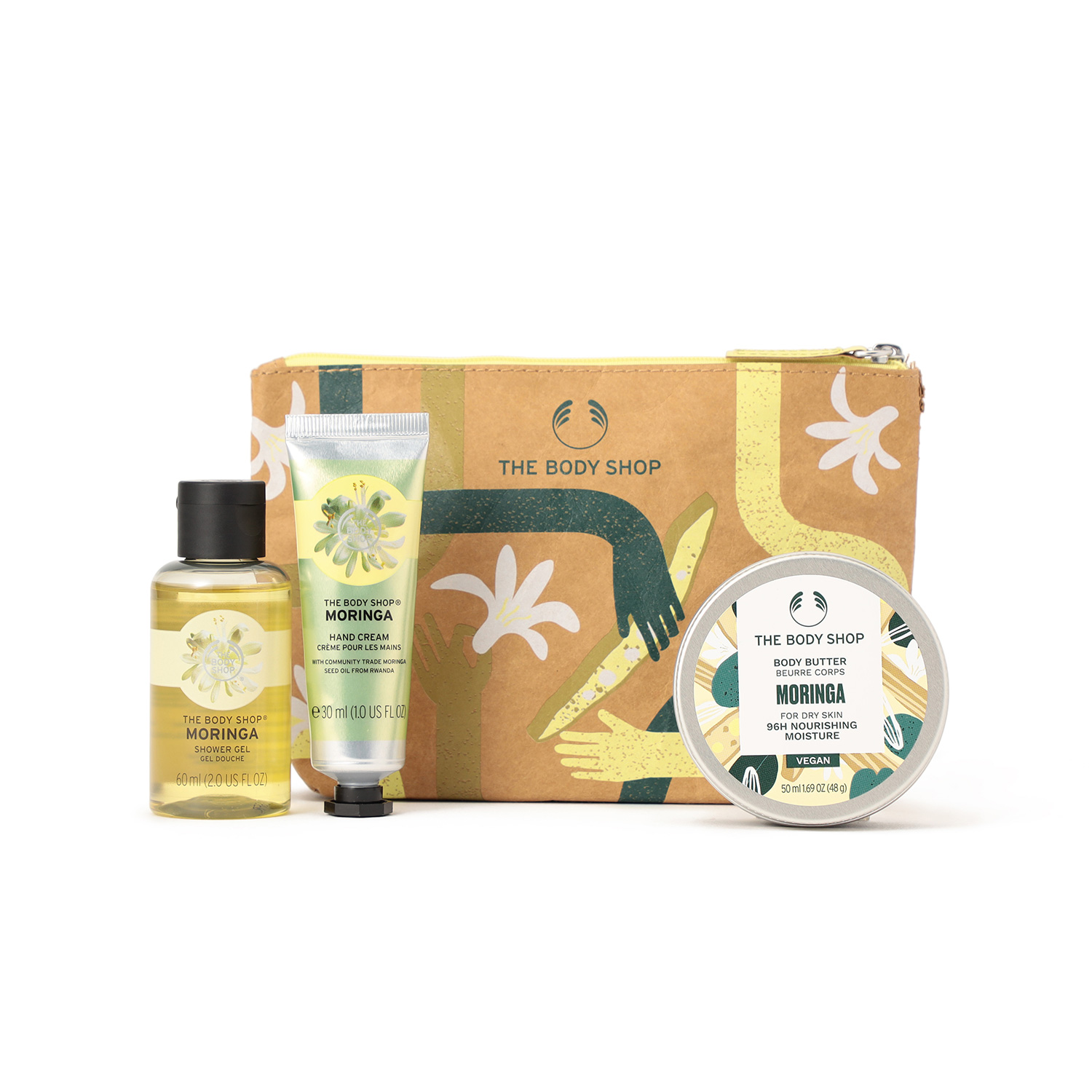 ホワイトフローラルのモリンガの香りで、優しく清らかな気分に包まれます。 肌をすっきりと洗い上げるミニボディシャンプー、なめらかなハリのある肌に導くミニボディクリーム、ジェルクリーム状のテクスチャーでさらっとべたつきにくい使用感のハンドクリームのセットです。