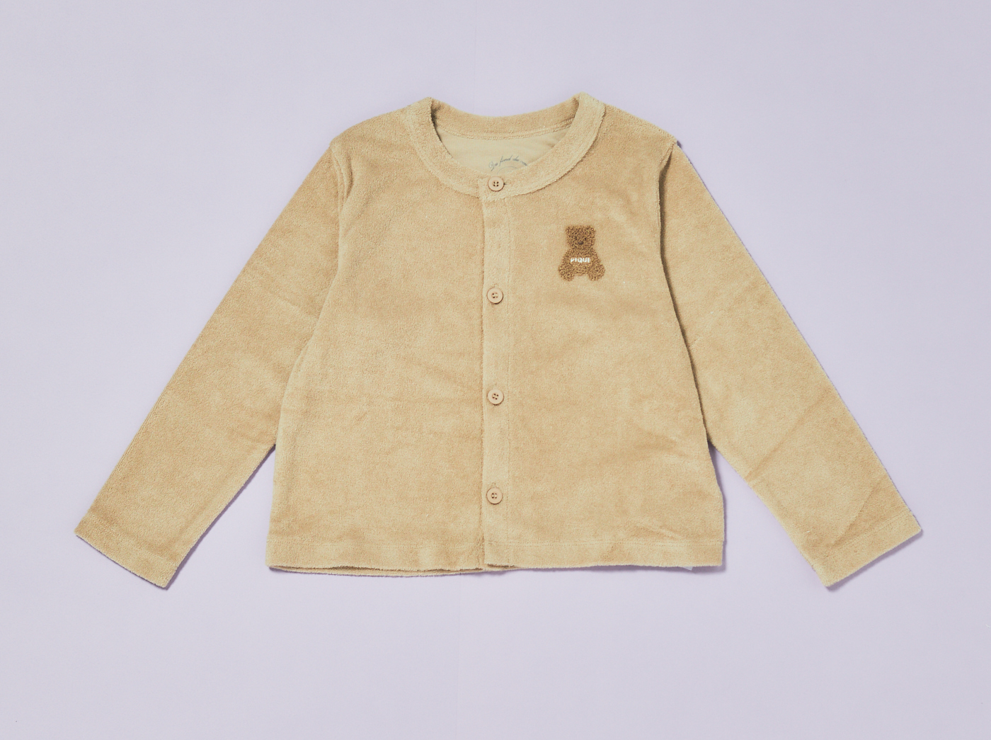 まるでくまのぬいぐるみのような存在感で、夏にうれしい、抗菌防臭機能を備えた柔らかいパイルのカーディガンは、1年を通してご利用いただける定番アイテムです。 お子様のお祝いなど、大切な人への贈り物にぜひいかがでしょうか?