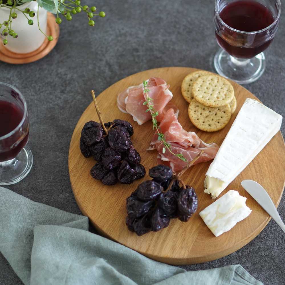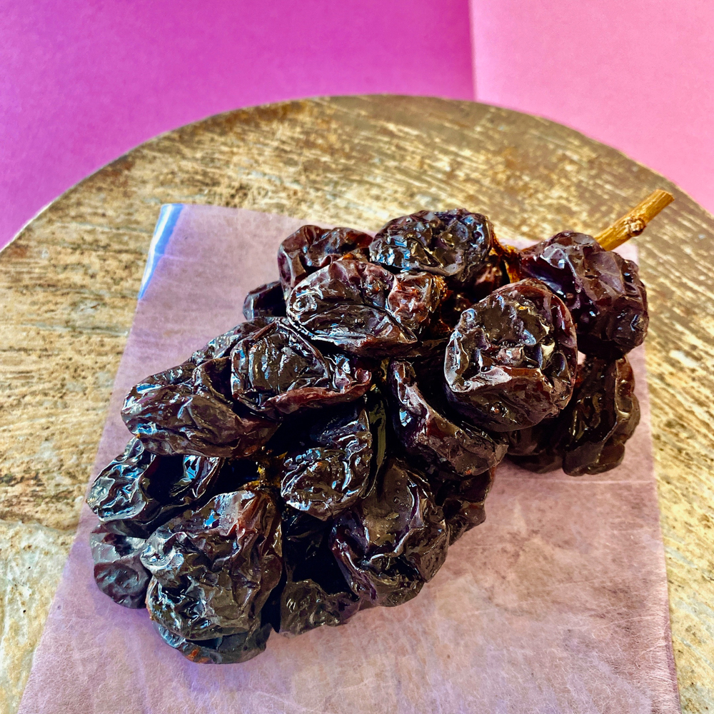 「VEGETARE(ベジターレ)」の枝付き巨峰のセミドライは冷蔵(クール便)でお届けします。 巨峰のセミドライ、ナッツとともにそのままお召し上がりください。 巨峰のセミドライを一粒シャンパンに浮かべて愉しむのもおすすめです。