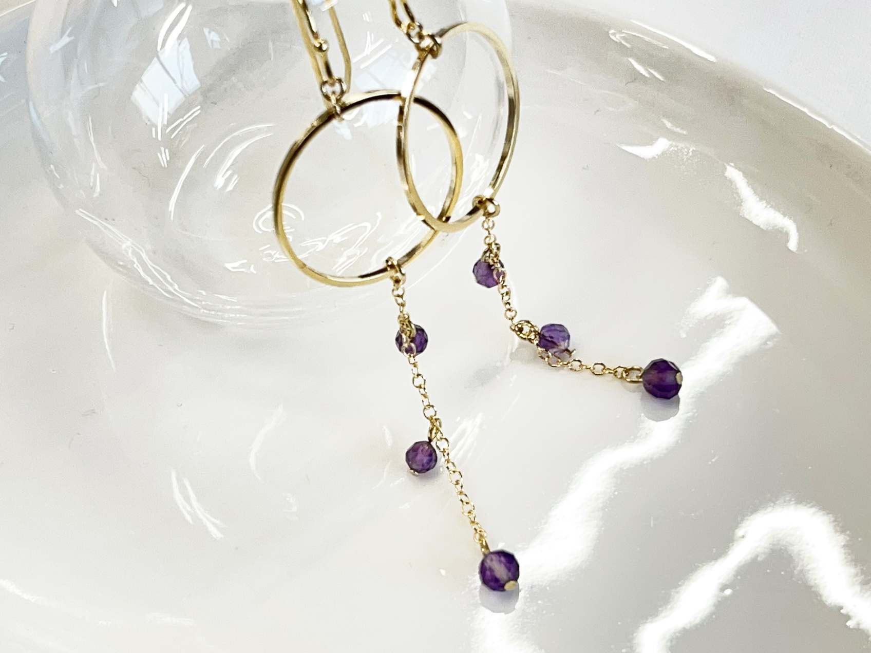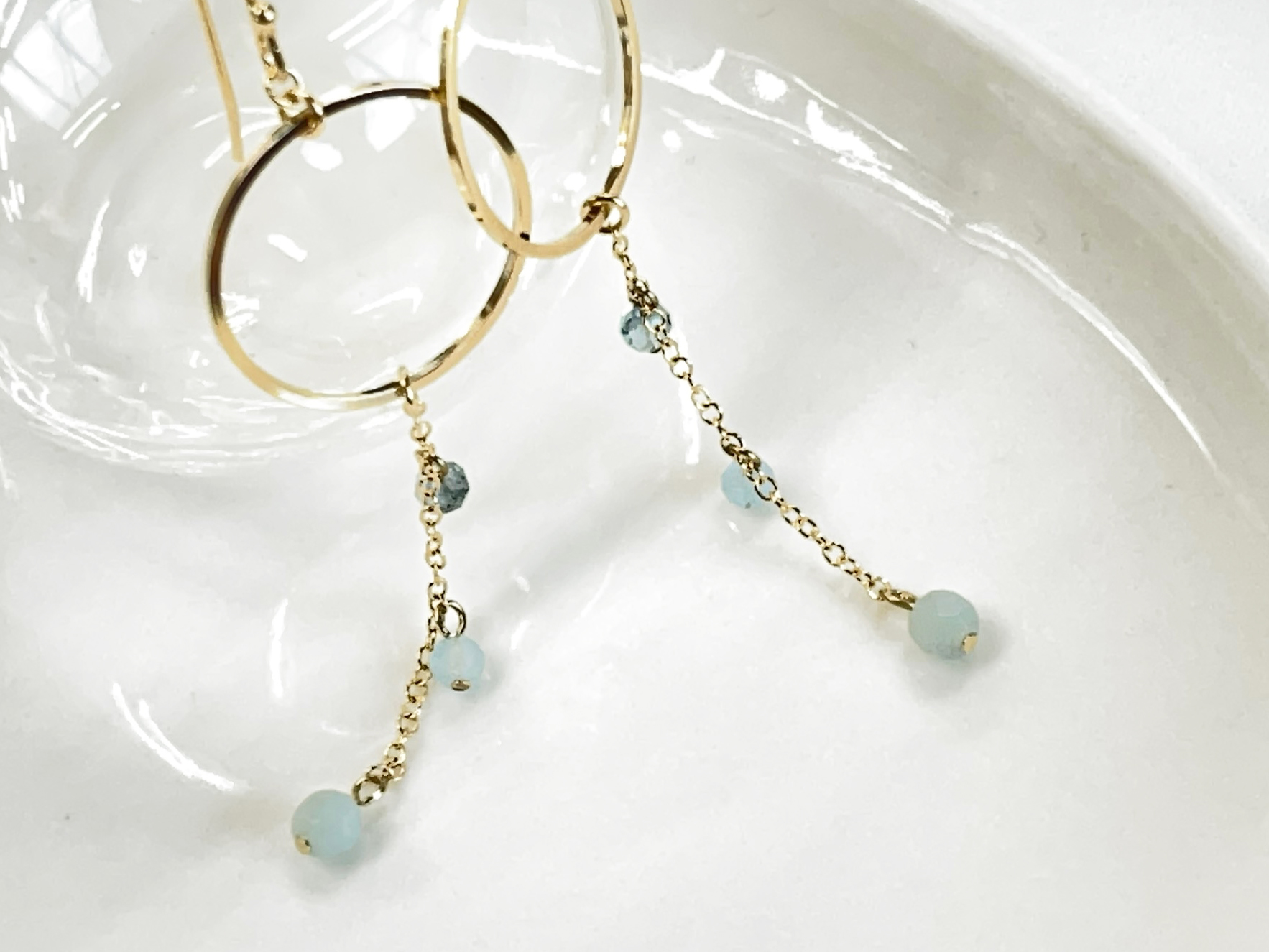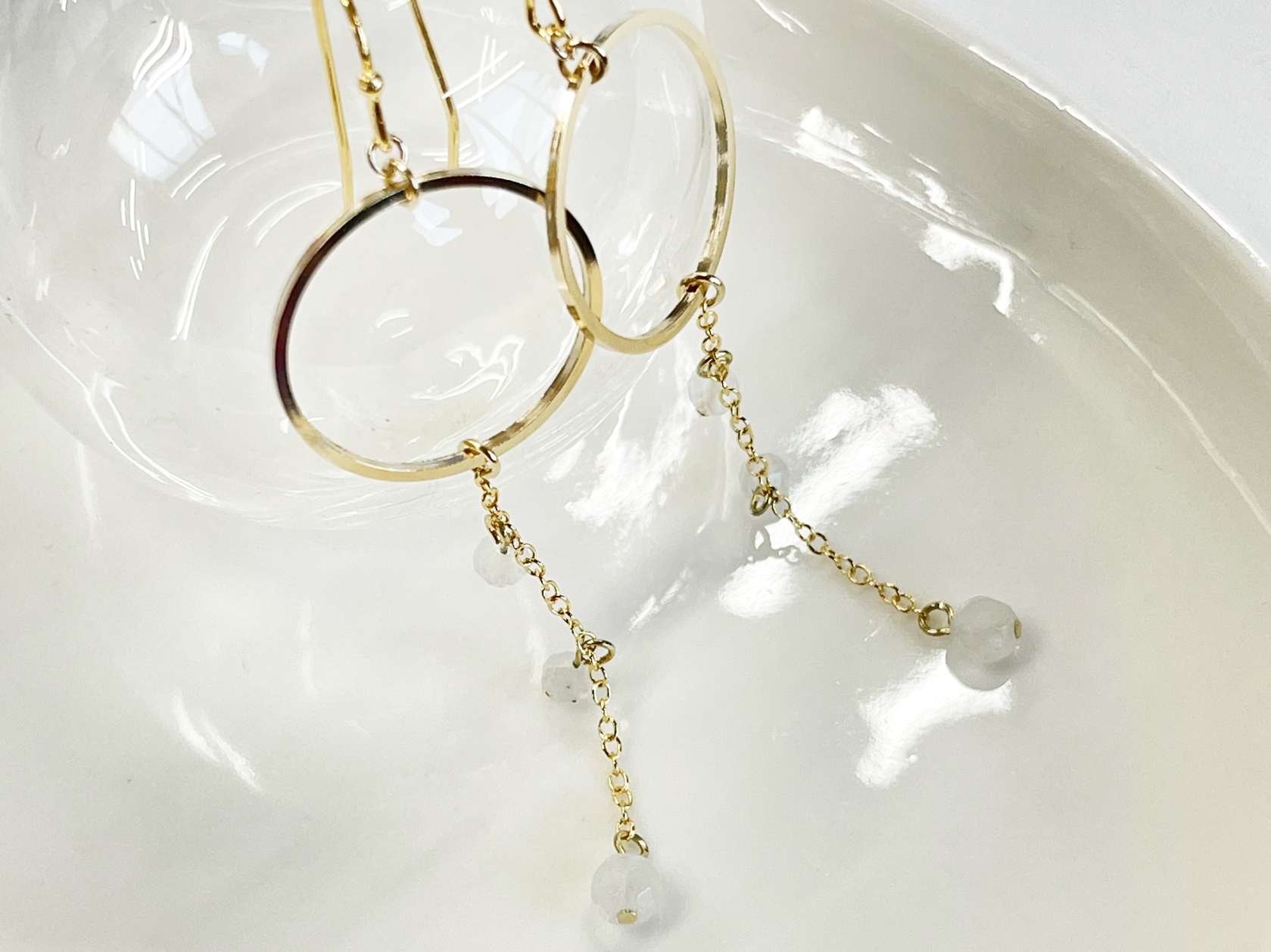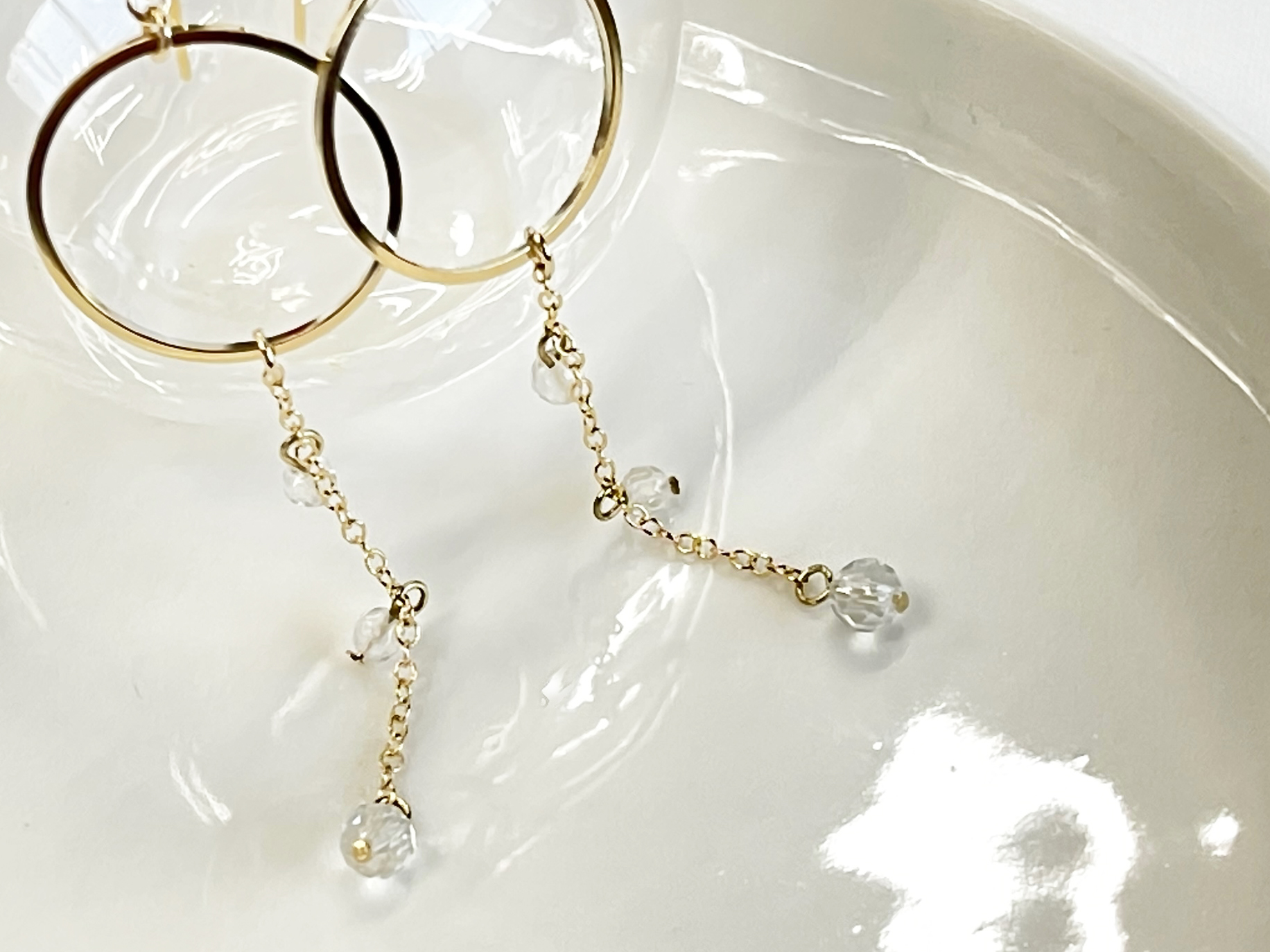 カットの入った天然石を使用した、エレガントでありながら個性も感じられるピアスです。専用BOXにお入れしてお届けいたしますのでギフトに最適!