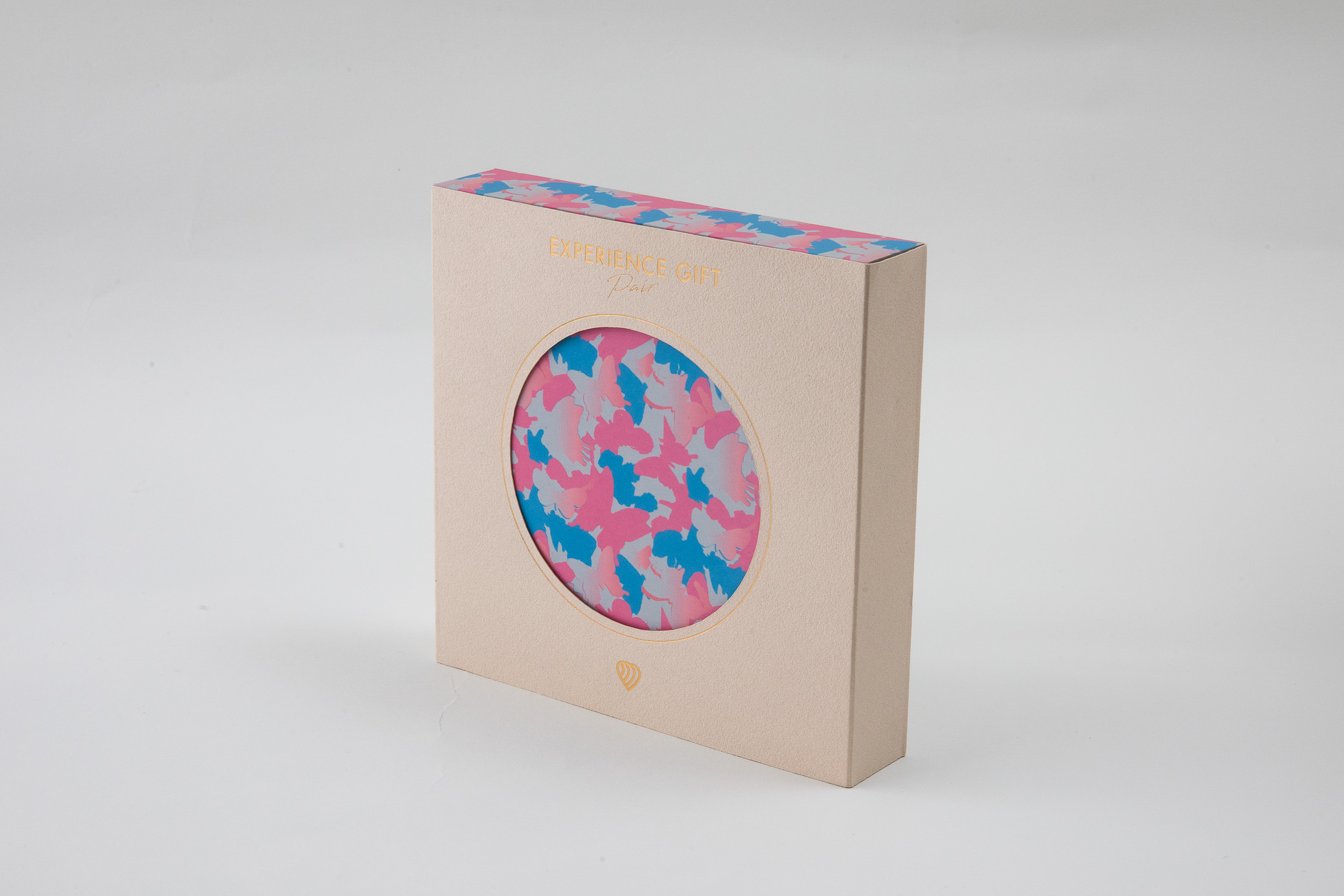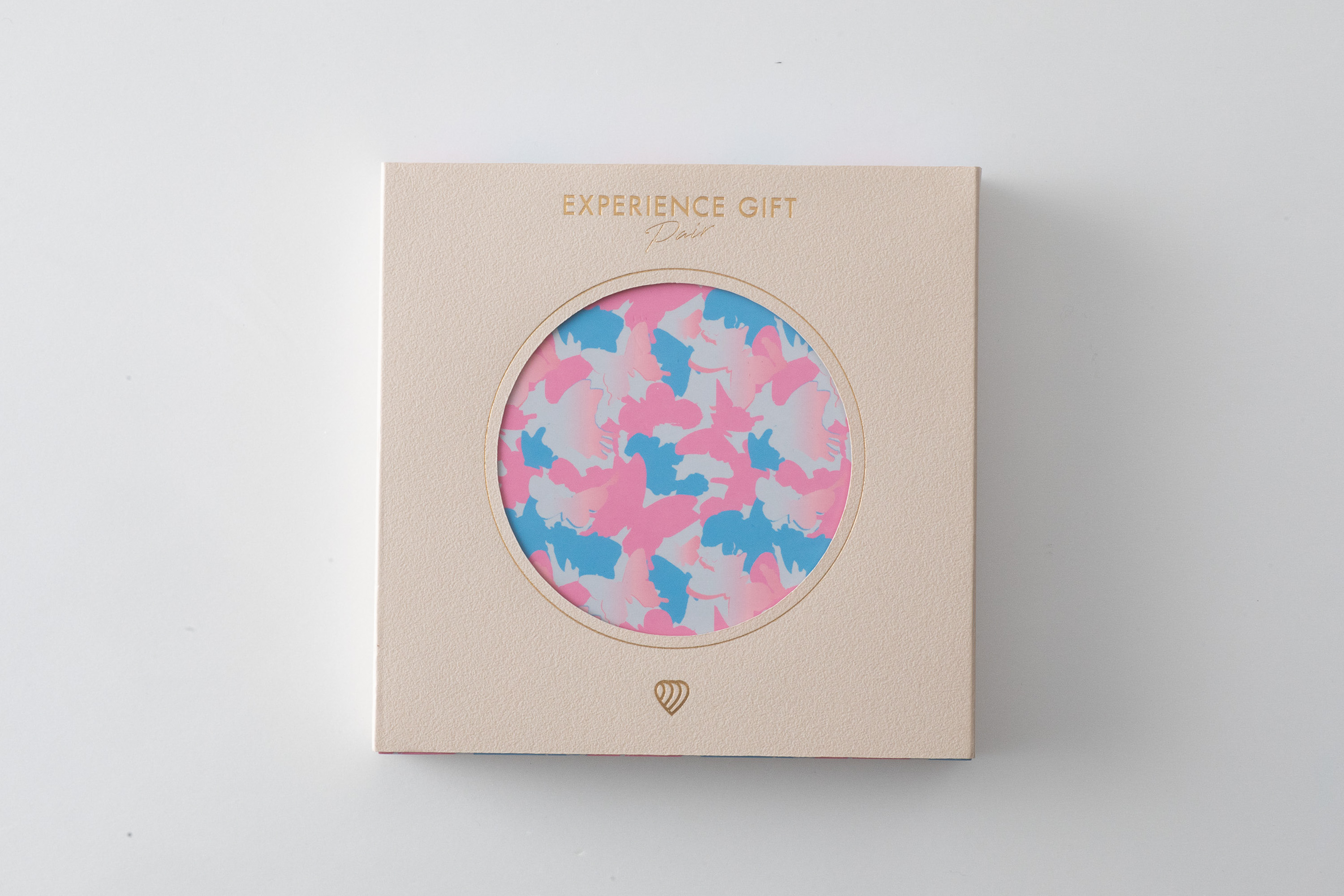 ""PAIR""をテーマにブルーとピンクを基調とした色彩豊かなパッケージでお届け。2色の蝶が織りなすカモフラ柄は、特別なギフトシーンを演出します。 化粧箱の表面は現代日本画家 大竹寛子が手掛けたアート作品が彩ります。 パッケージの素材は、環境に配慮した再生紙、森林認証紙を使用しています。