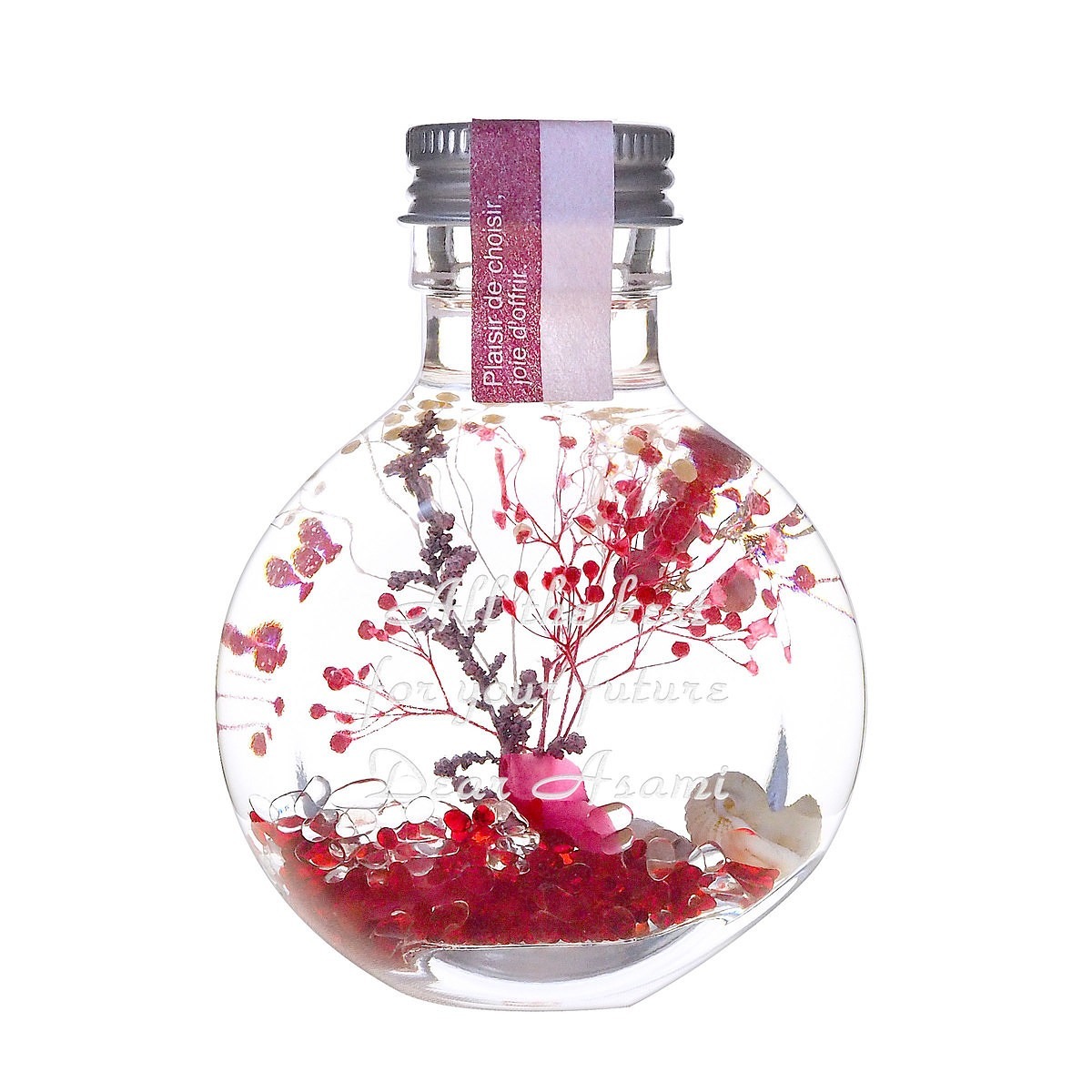 内容物については自然由来のものを使用しており、なるべくイメージに相違がないものが選別されていますがその時期によって用意できるものが使われますので、色や形状は一つ一つ異なります。 季節によっても異なりますので、その時々の素材を使用した世界に一つしかない組み合わせを楽しんでいただけると幸いです。 ※ オイルタンク内の装飾は変わる場合があります。 ※ 大きく揺り動かすと軽く固定されている中の装飾がバラバラになる場合がありますので、優しくお取扱いください。