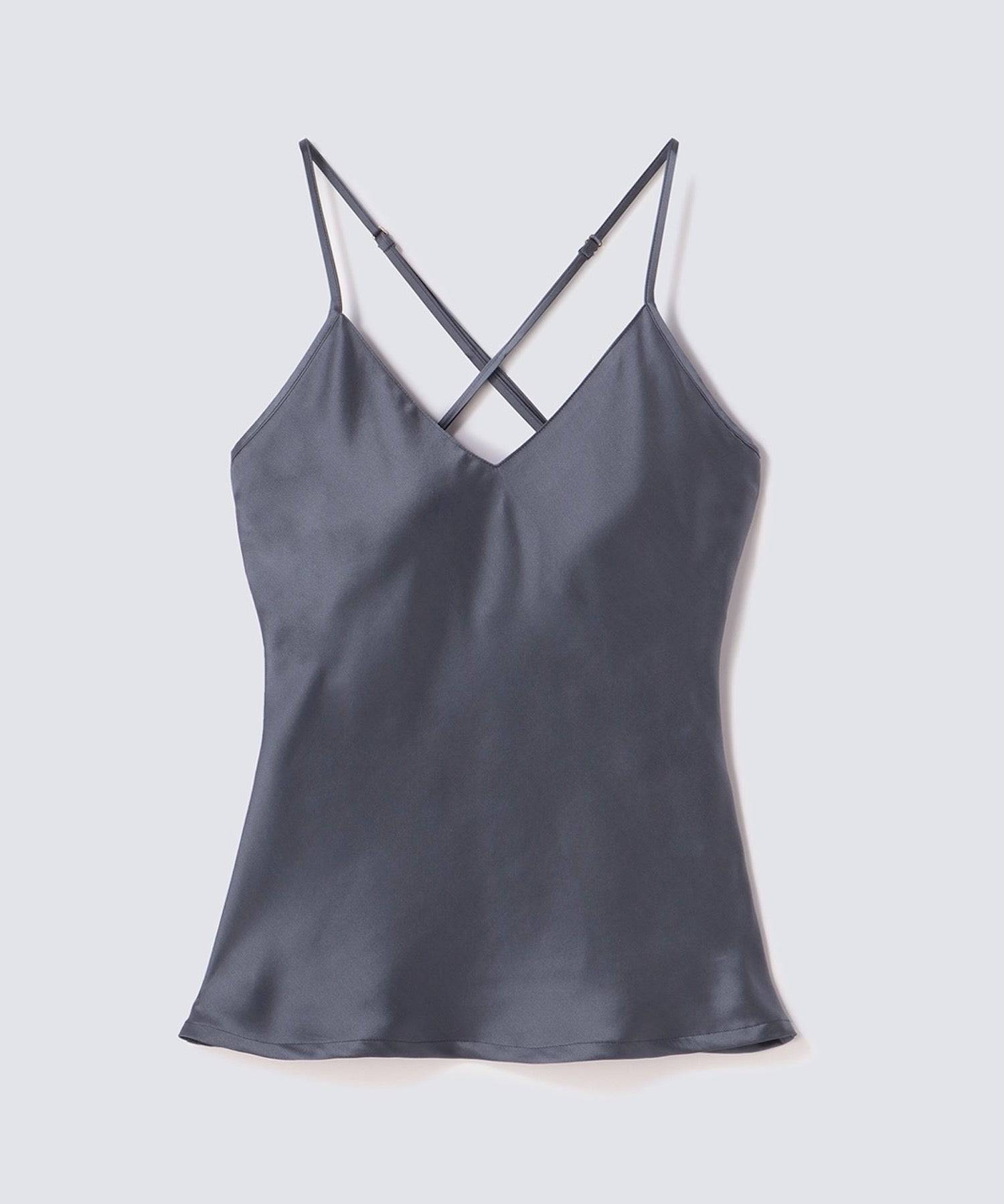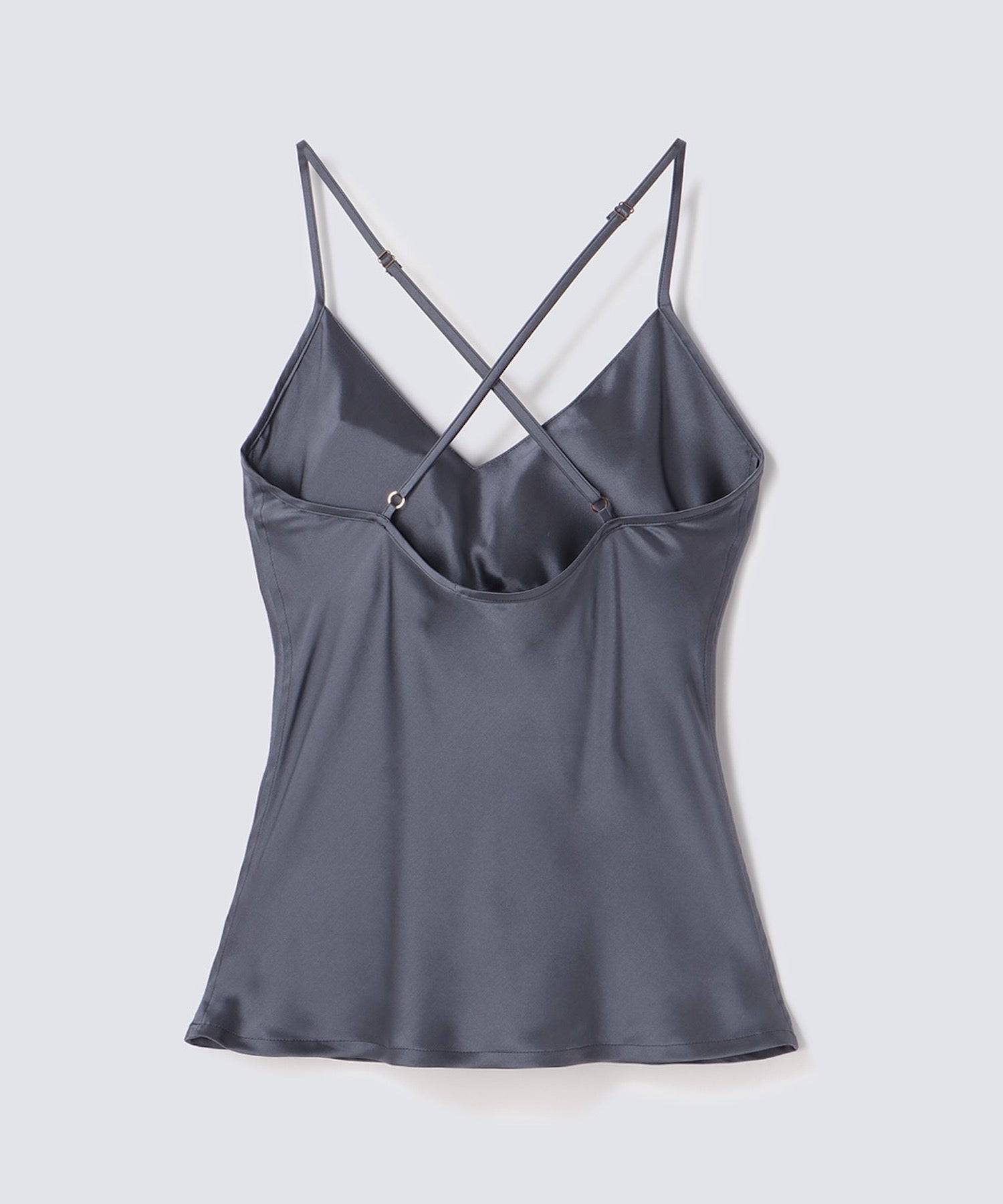 シルクキャミソールは肩紐でサイズ感の調整が可能なだけでなく、カップ付きデザインで機能面も充実。シルエットはウエストを少し絞ったデザイン。脇線にはステッチが2本走っていることで、比較的強度にも気を使った縫製仕様にです。 シルクパジャマのインナーとしてのご着用もおすすめです。