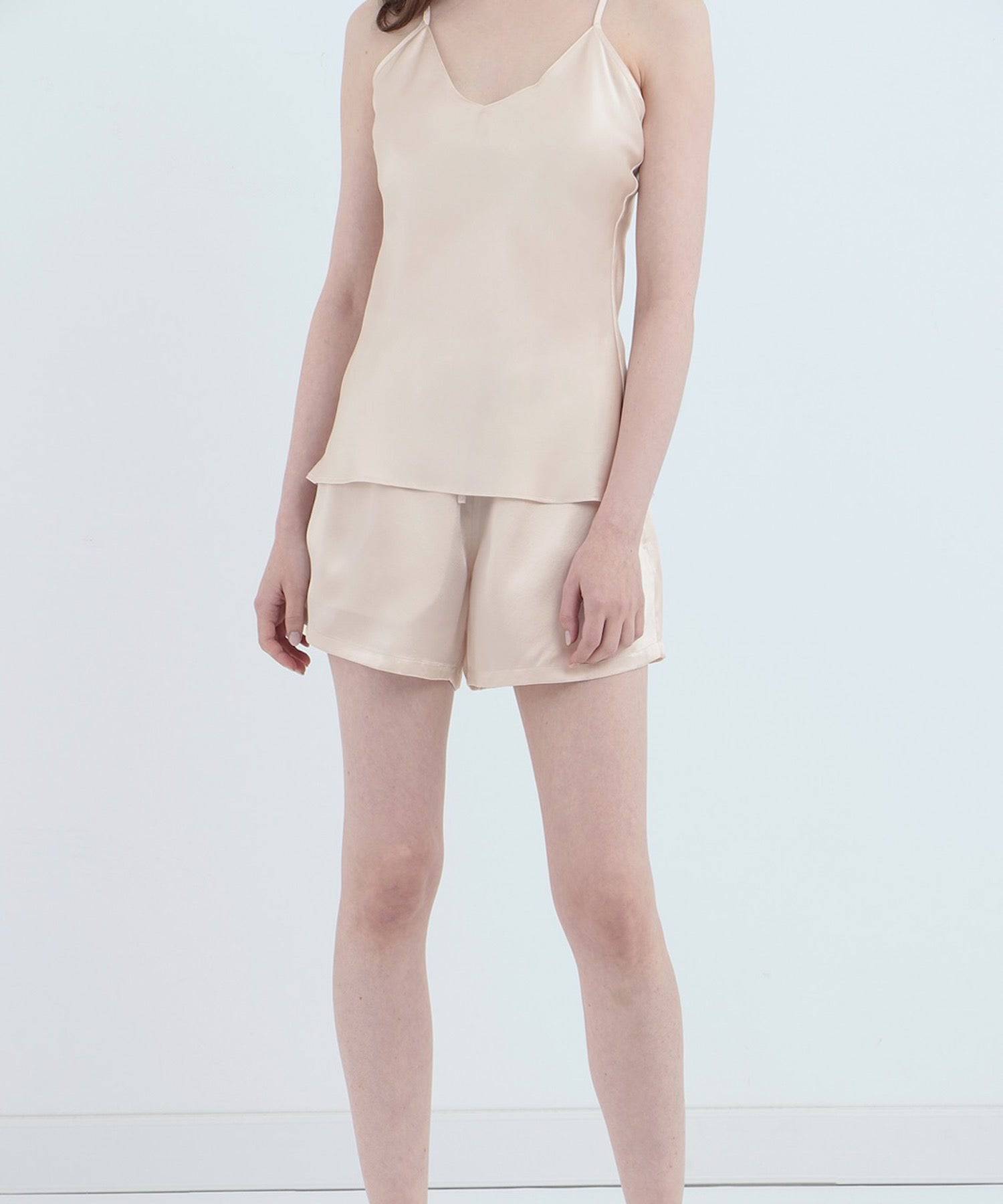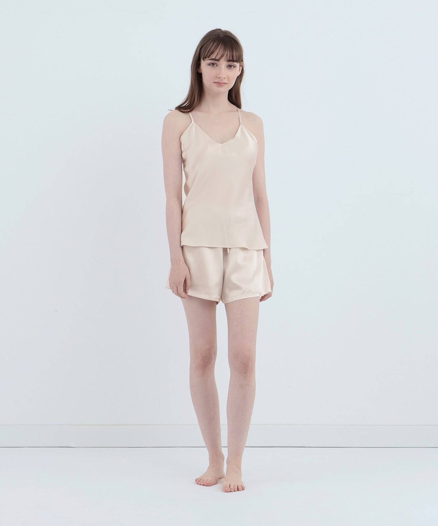 大口注文・法人のお問い合わせはこちらFoo Tokyoの定番シルク生地を使ったキャミソールとショートパンツのセットです。 世界でも指折りの繊細な“染め”技術を持つ日本。その中でも選び抜かれた国内工場で、Foo Tokyoのシルクキャミソールとショートパンツは1枚1枚丁寧に染め上げられております。
